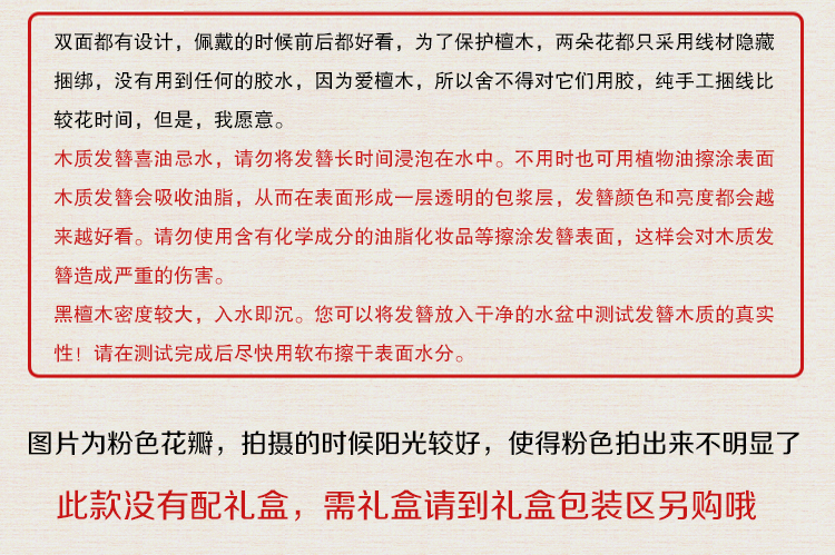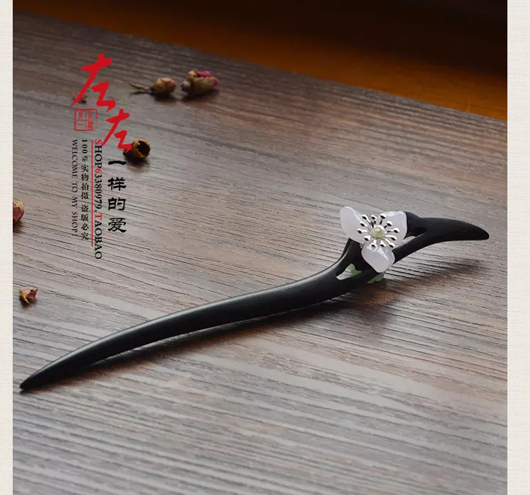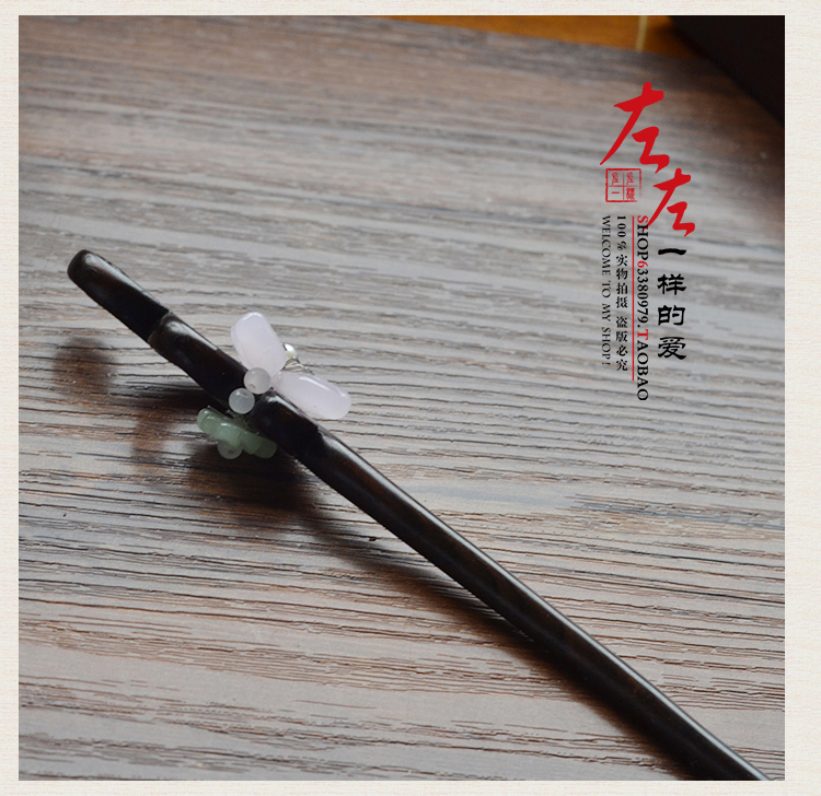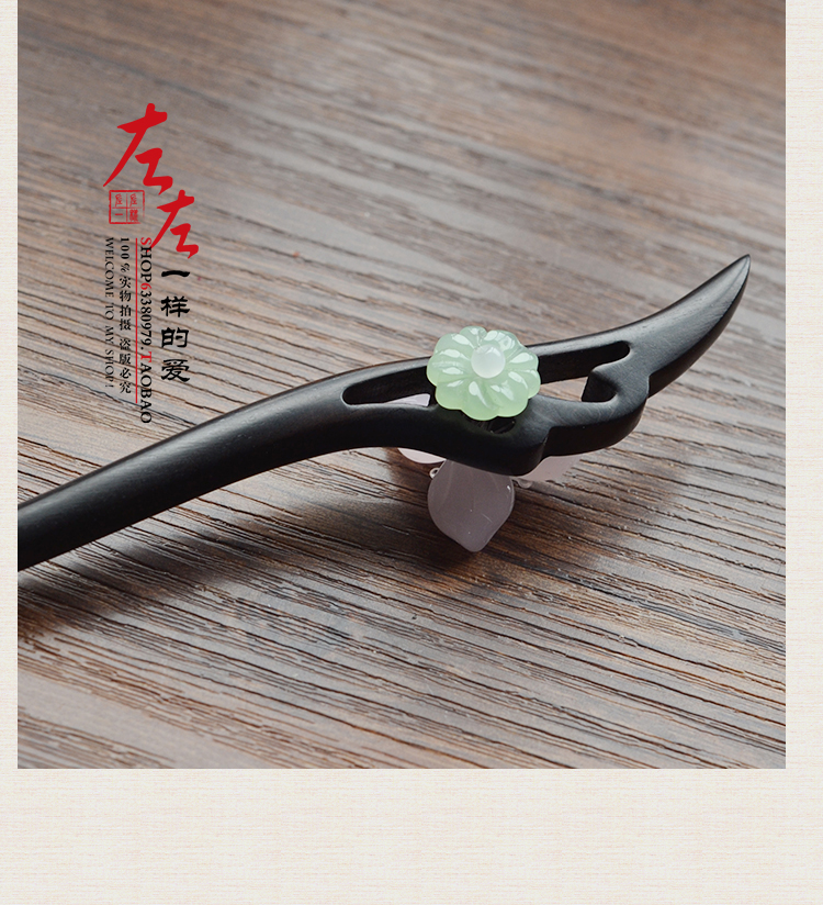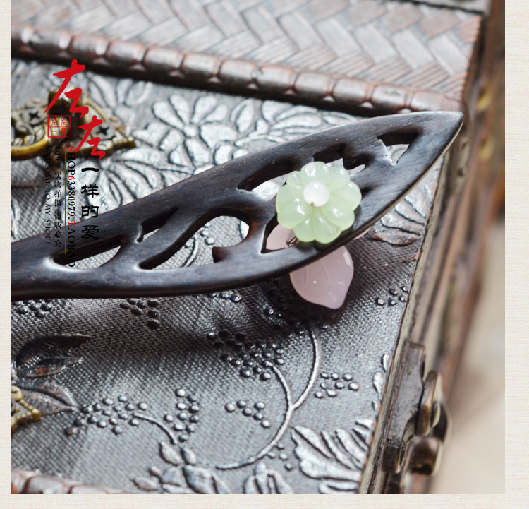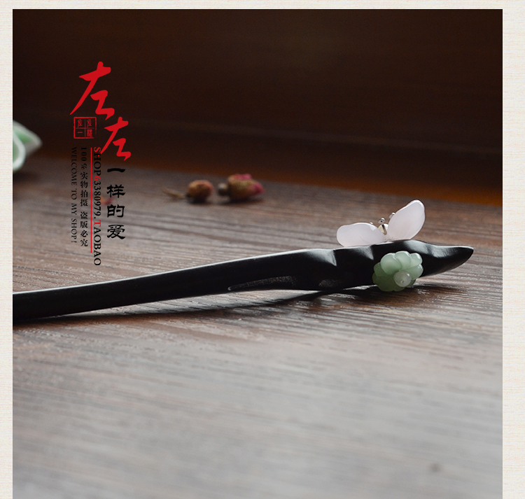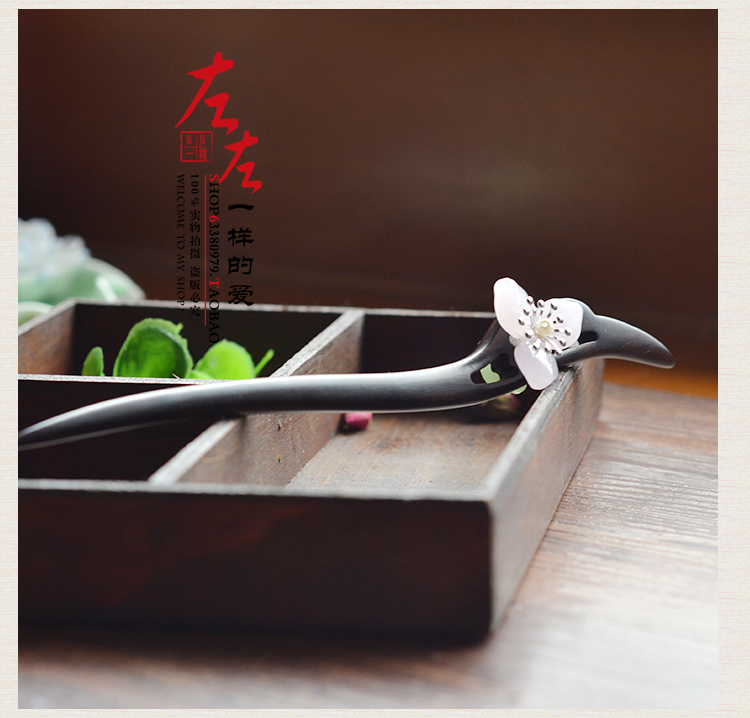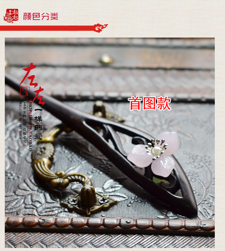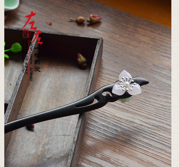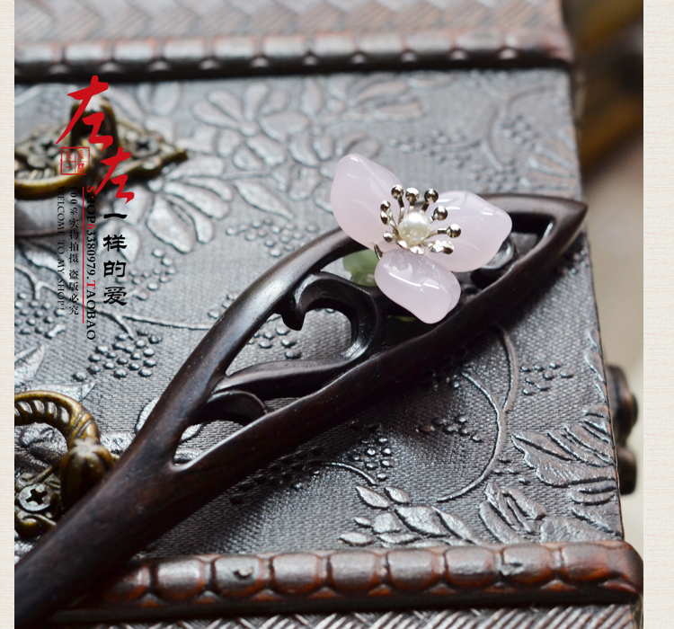 首圖款原創手工雕刻黑檀木發簪盤發復古典發飾頭飾簪子粉花漢服禮物