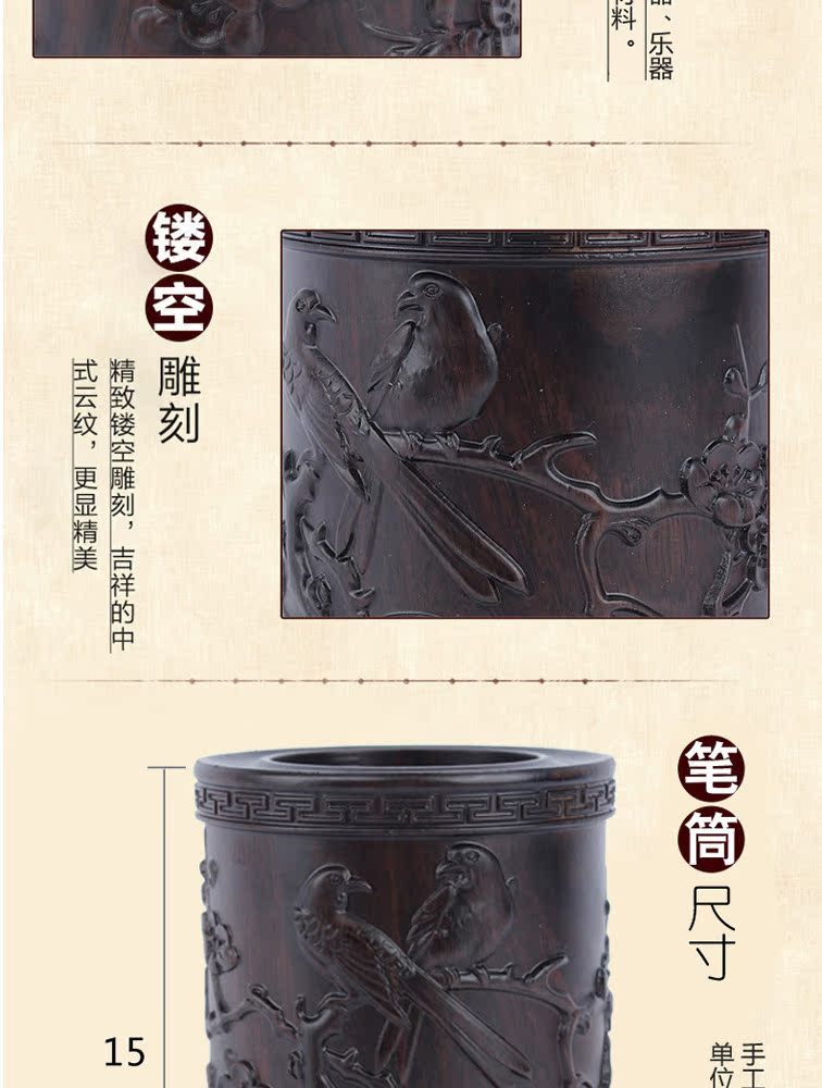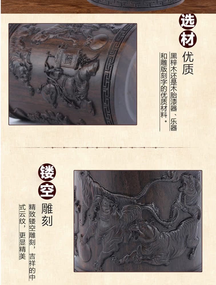 風順筆筒紅木筆筒木制筆筒文房用批發定制黑梓木鎮尺擺件送禮大筆筒