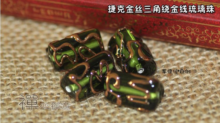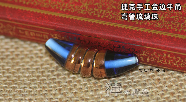金邊網格琉璃珠湖藍14*10MM禪心禪意促銷捷克金絲外鍍銅金砂圓珠琉璃 DIY佛珠手鏈手串配件