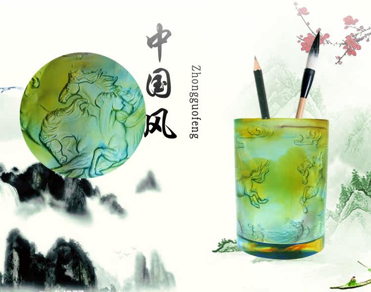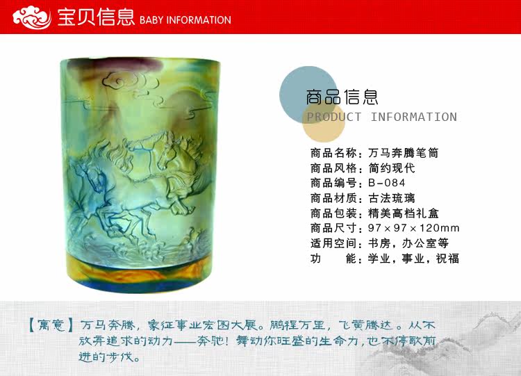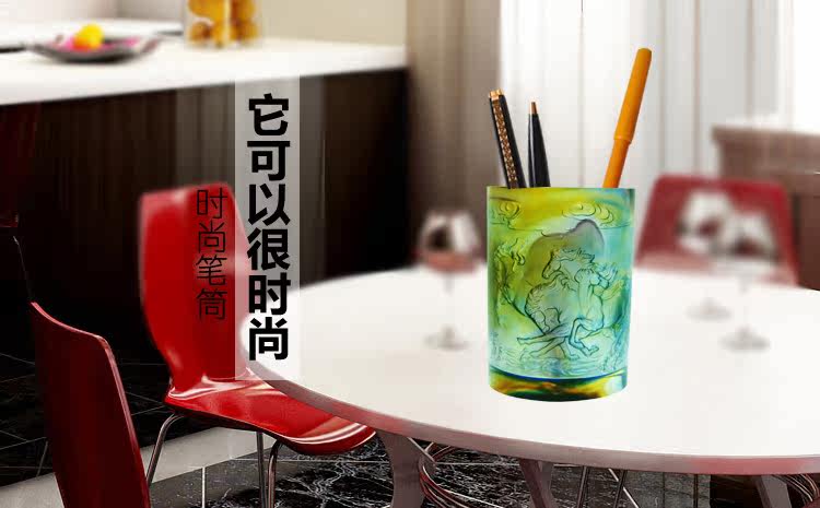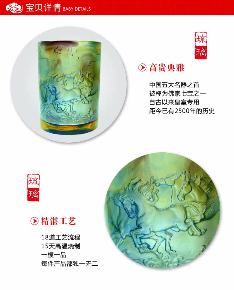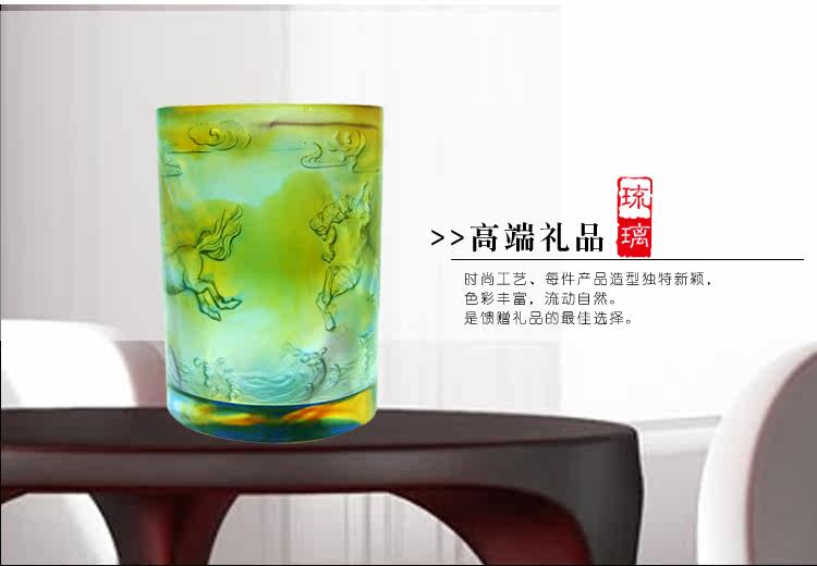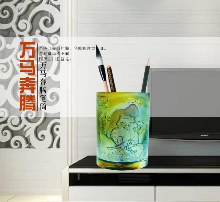 正品琉璃馬到成功筆筒擺件書房辦公桌創意禮品馬年高檔生日禮物