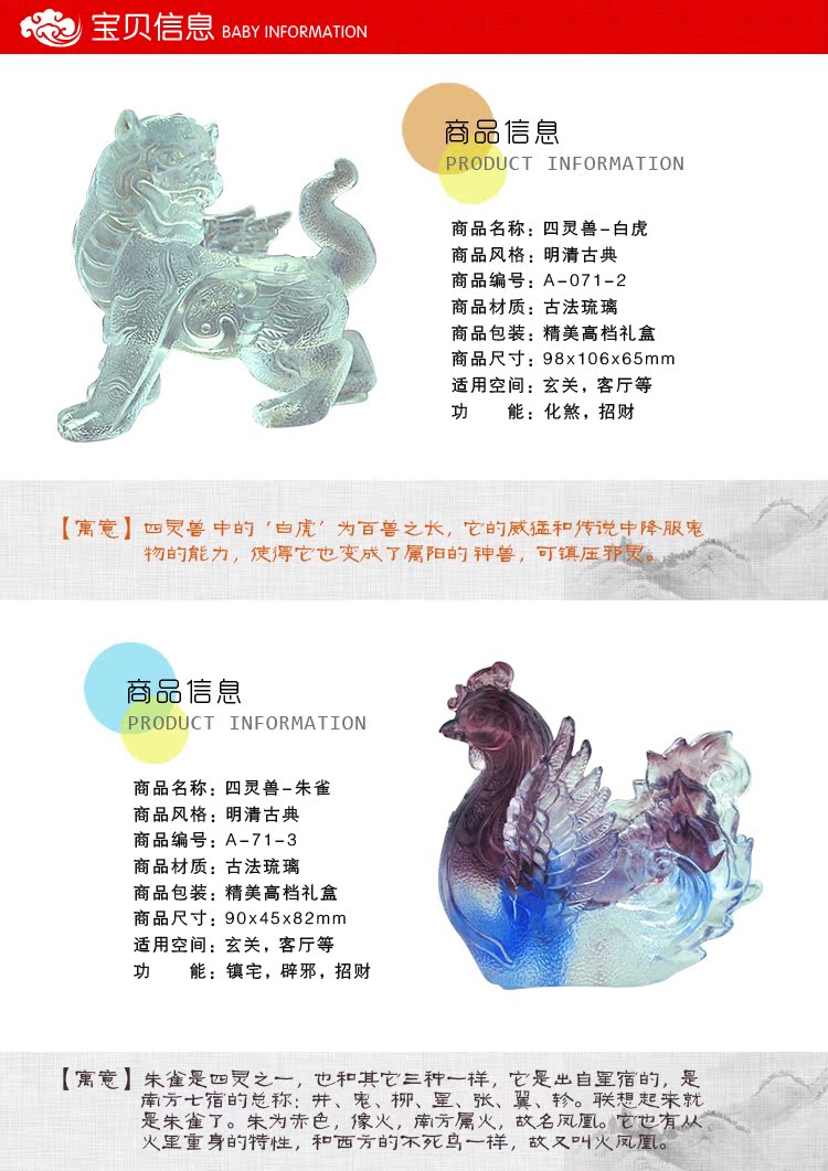 四靈獸-白虎四神獸白虎琉璃擺件 高檔家居辟邪鎮宅工藝品 辦公室商務會議禮品