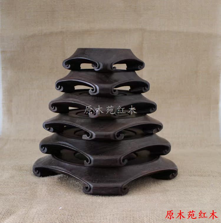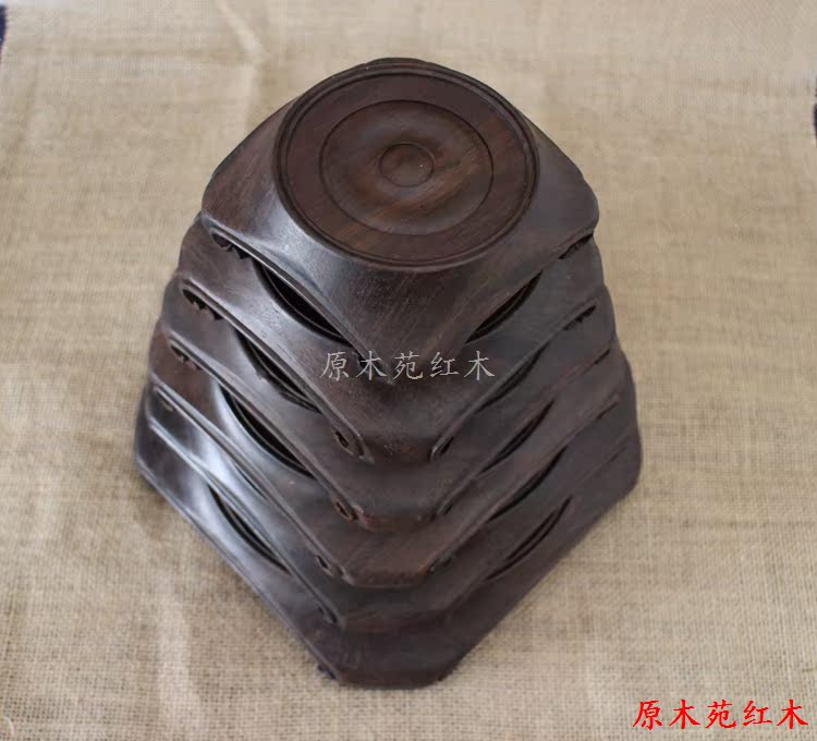 內經9厘米紅木木雕擺件實木盆景花瓶茶壺木托底座石頭擺件底座瓷器圓底座