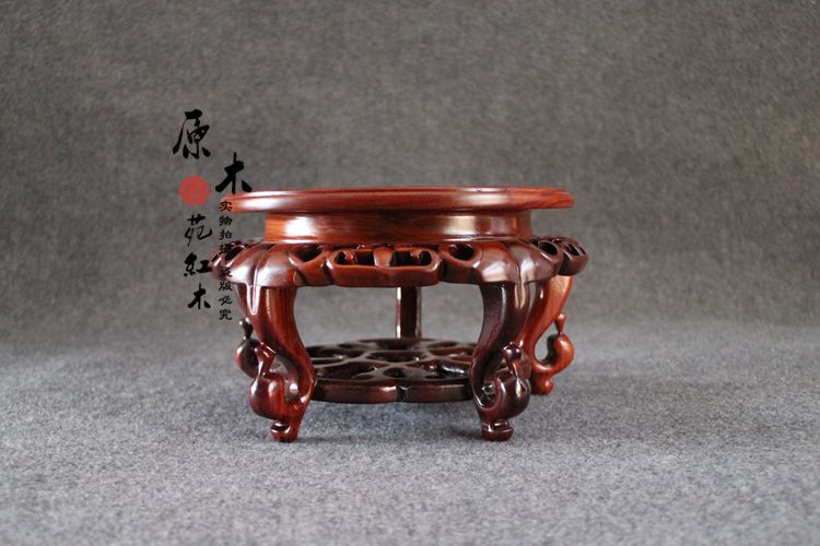 中號:內徑20厘米高12厘米紅木工藝品圓形紅檀木海堂花幾 花瓶盆景魚缸架 奇石擺件實木底座