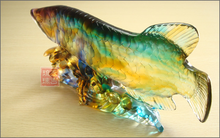 小號彩色金龍魚+水晶底座公司飯店開業工藝品禮品 客廳招財金龍魚擺件 琉璃大號電視柜擺件