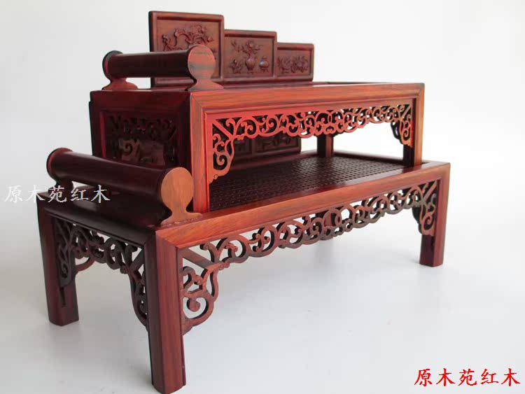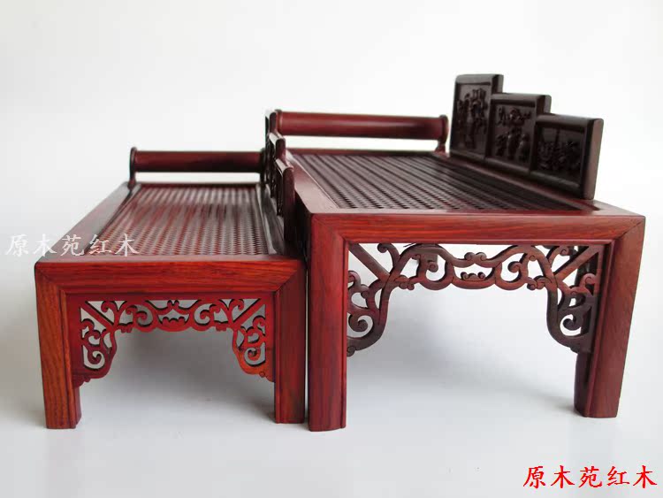 材質說明:紅酸枝,長以北則稱為老紅木。它與黃花梨等同屬豆科植物中的蝶形花亞科黃檀屬。其木質與顏色相似于小葉紫檀,年輪紋都是直絲狀,鬃眼比紫檀大,顏色近似棗紅色。其木質堅硬、細膩,可沉于水,一般要生長500年以上才能使用,它區別于其他木材的最明顯之處在于其木紋在深紅色中常常夾有深褐色或者黑色條紋,給人以古色古香的感覺。