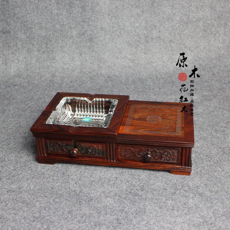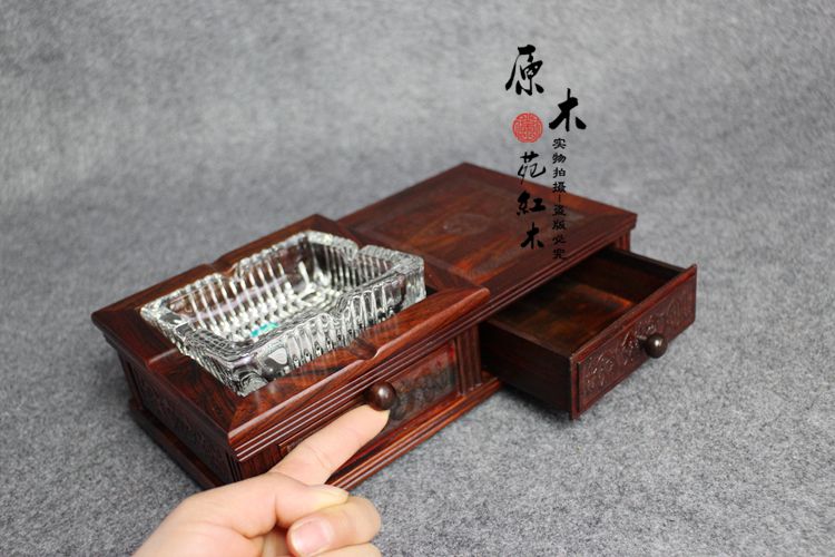 大紅酸枝煙灰缸紅木煙灰缸創意個性仿古紅酸枝高檔煙灰缸家居擺飾