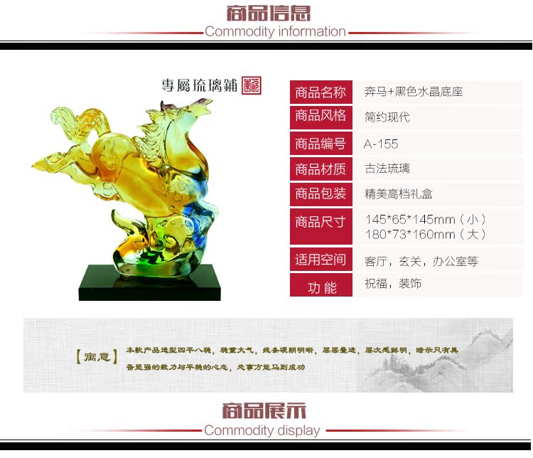 大尺寸180*73*160MM琉璃馬到成功馬擺件招財祝福琉璃高檔禮品送領導生日喬遷辦公擺件