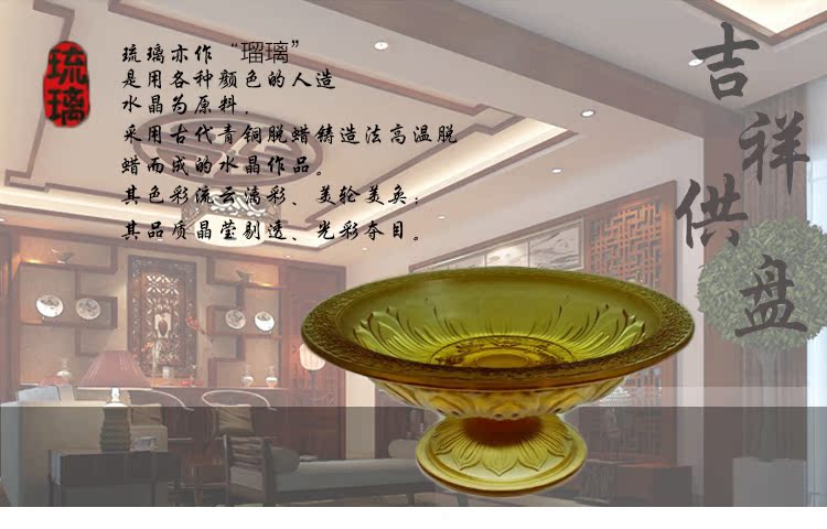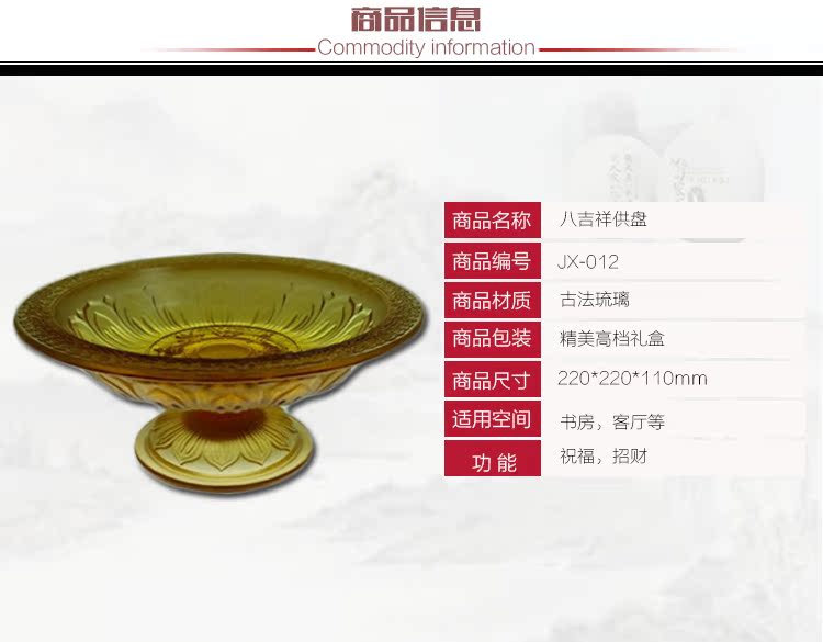 大220*220*110琉璃擺件八吉祥供盤辦公桌高檔禮品和和美美結婚首飾裝飾品