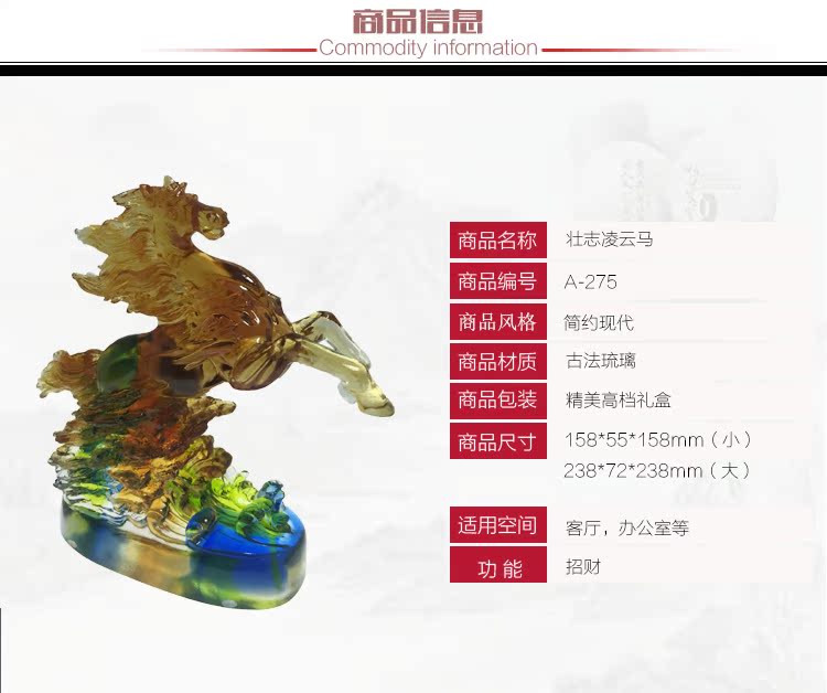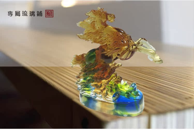 大:238*72*238MM琉璃擺件馬到成功家居裝飾擺設動物工藝品送領導喬遷開業高檔禮品