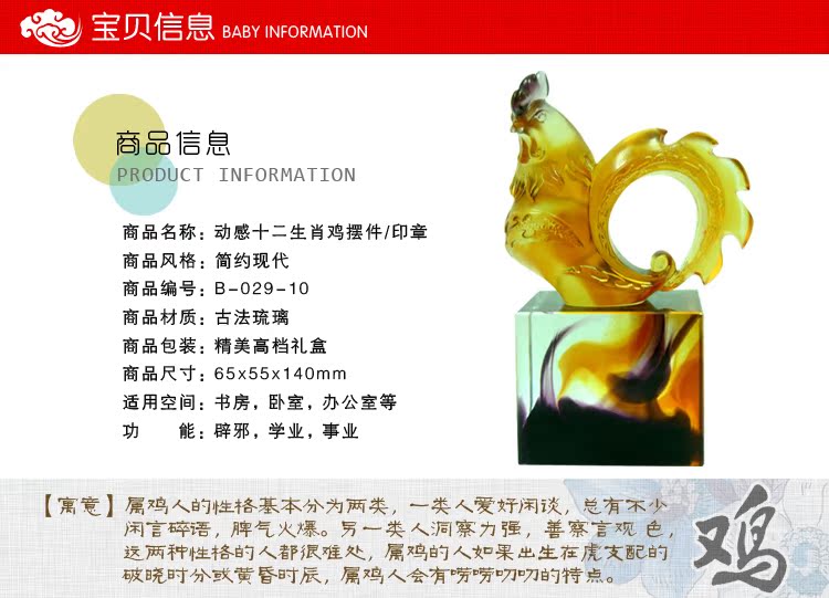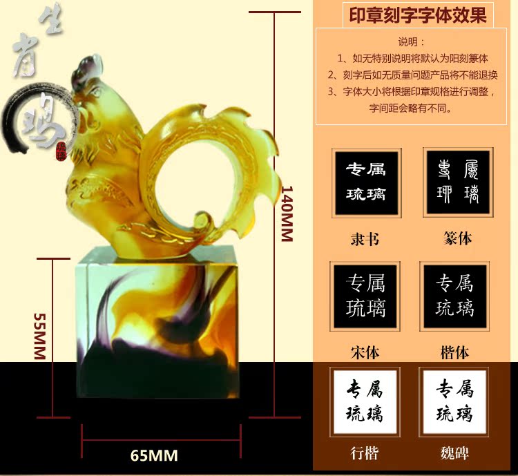 十二生肖雞正品琉璃十二生肖印章雞擺件婚慶生日禮物書房辦公室刻字實用禮品