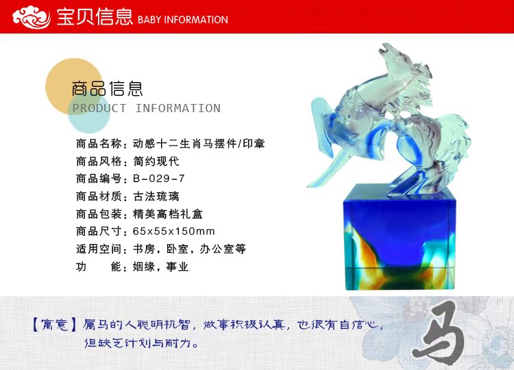 十二生肖馬琉璃十二生肖馬印章擺件生日喬遷馬到成功家居辦公室禮品高檔禮物