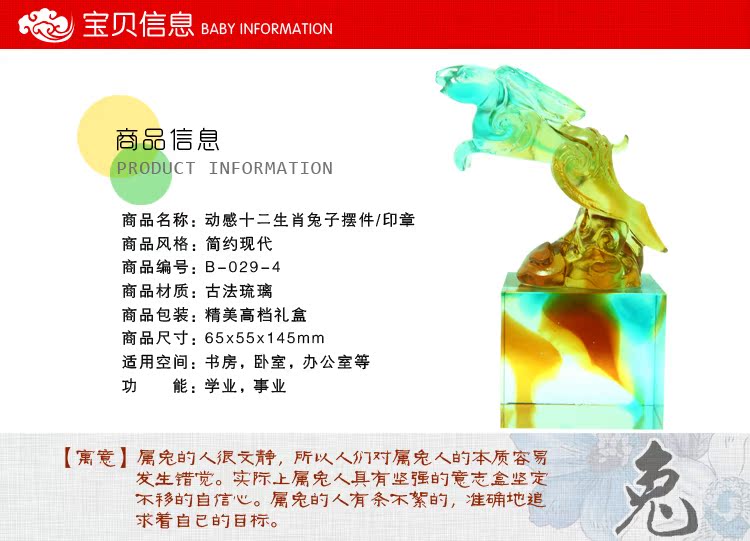 十二生肖兔熱賣琉璃十二生肖兔子印章擺件 生日婚慶創意生肖禮物 家居裝飾品