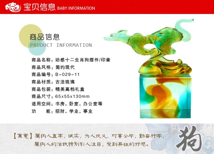 十二生肖狗刻字琉璃十二生肖擺件狗印章書房辦公室實用禮品高檔生日結婚禮物