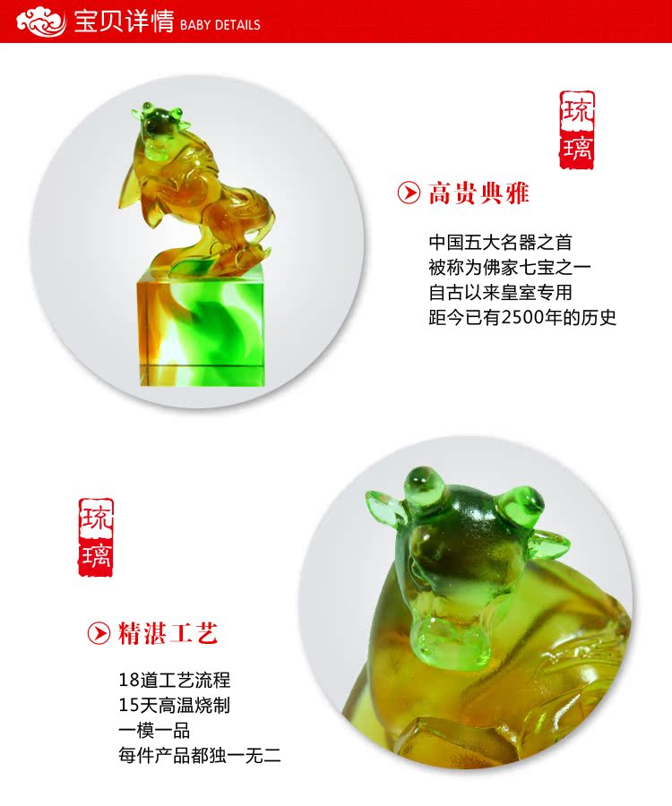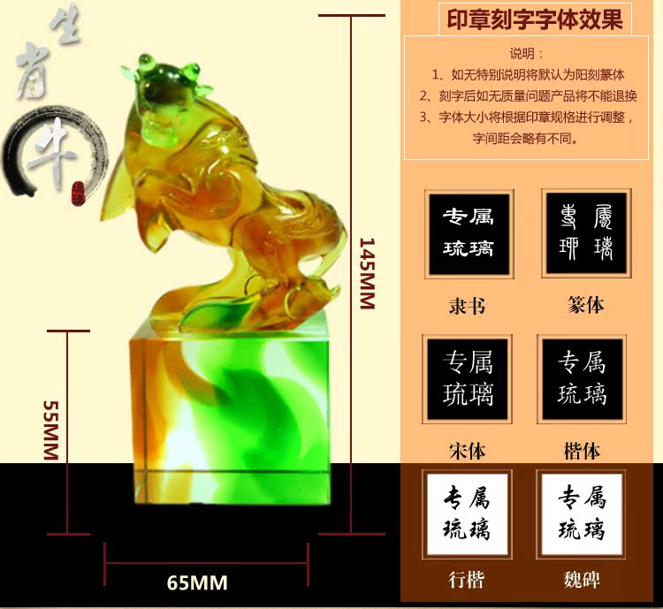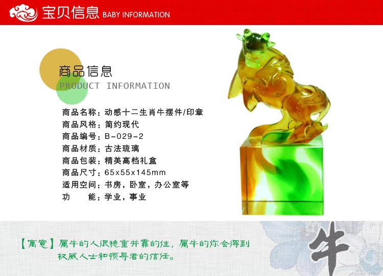 十二生肖-牛琉璃十二生肖印章牛 琉璃生肖擺件 送領導生日書房辦公室高檔禮品