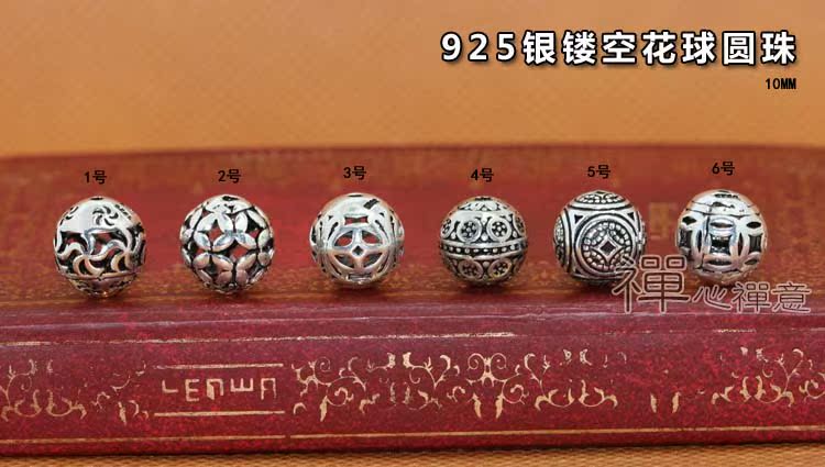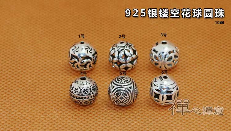 【品名】佛珠 925銀Silver古銀 925銀 花球雕刻圓珠 油黑款
