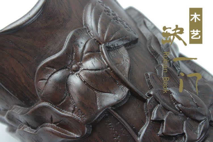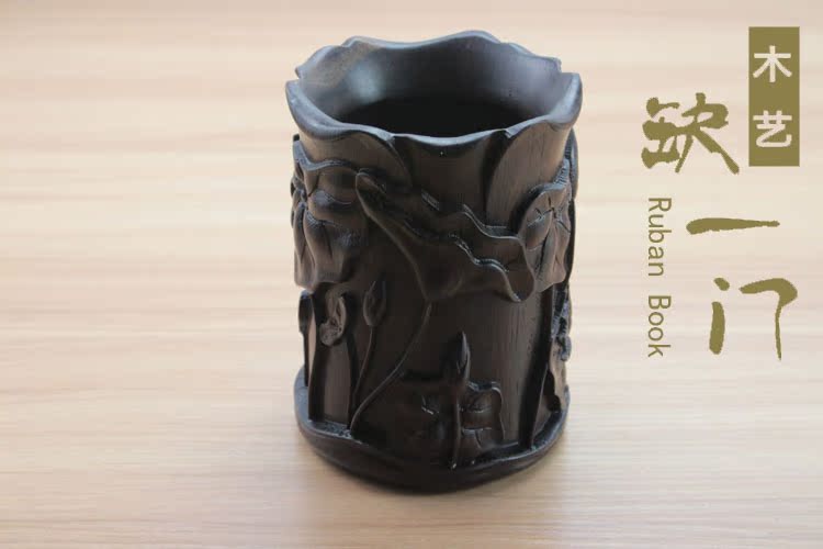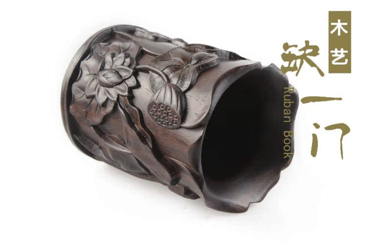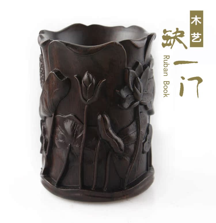 1號【缺一門】荷花雕刻筆筒文房四寶/紅木浮雕筆筒*實木擺件文房用品