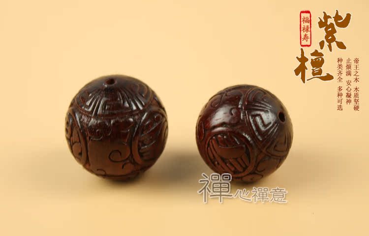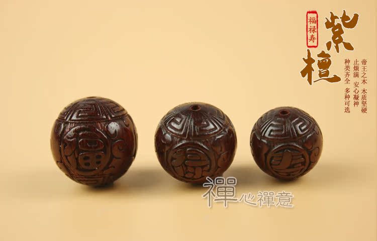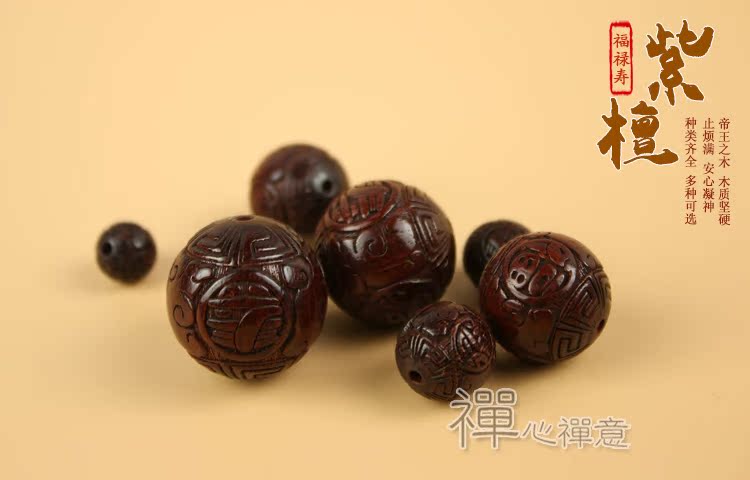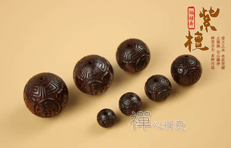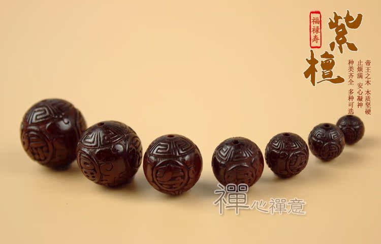 10mm禪心禪意文玩小葉紫檀福祿壽圓珠散珠隔珠DIY佛珠手鏈項鏈配件