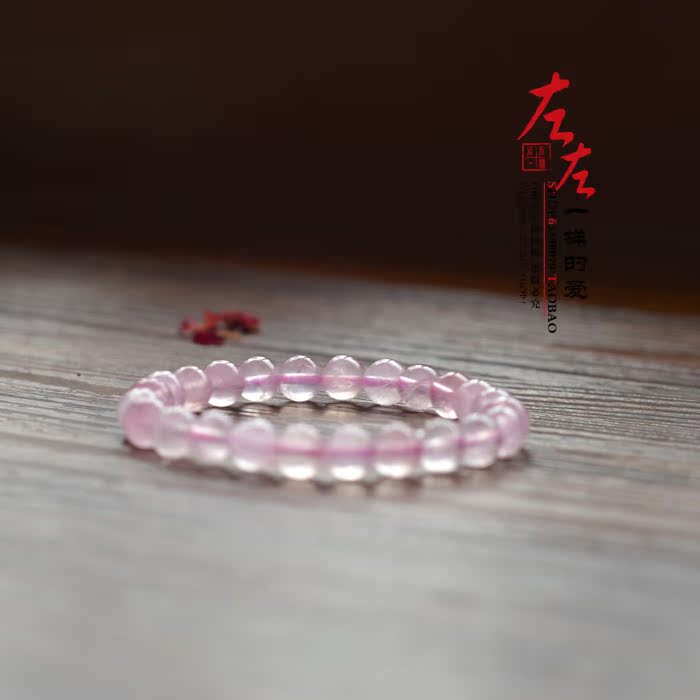 說明:天然粉晶,據說桃花運就靠它啦,哈哈,我真的很喜歡這樣的手鏈,天然粉晶里會有很多的冰裂和棉絮,色澤每一批也會有差異,不會一模一樣,另外粉晶雖然叫粉晶,但其實不是很粉,是非常淡淡的粉。
