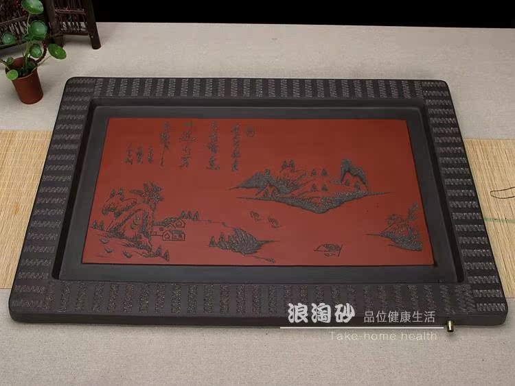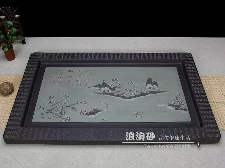 100*56藍色宜興正品紫砂茶盤 大號方形茶海 全手工刻繪 排水式紫砂茶桌特價