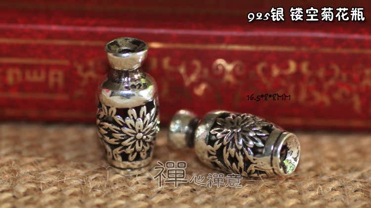 【品名】DIY佛珠配件 925銀油黑款鏤空菊花瓶16.5*8*8MM 批發