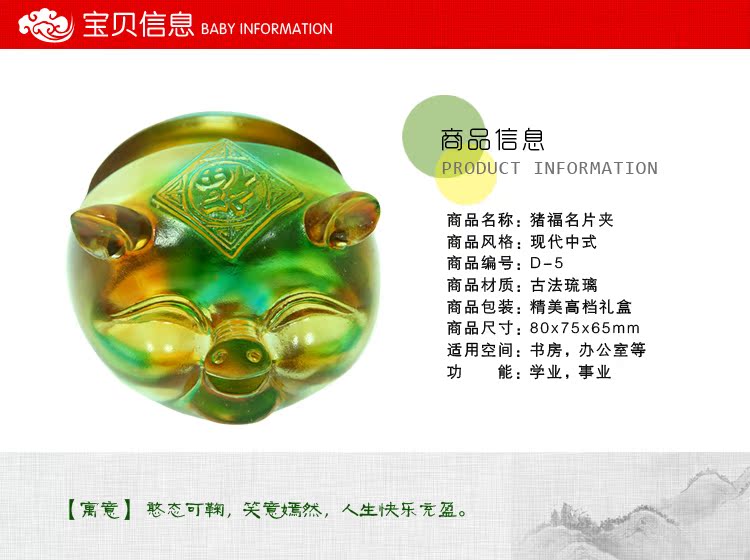 琉璃名片座祝福擺件 小豬可愛名片夾 朋友同事生日精美禮品