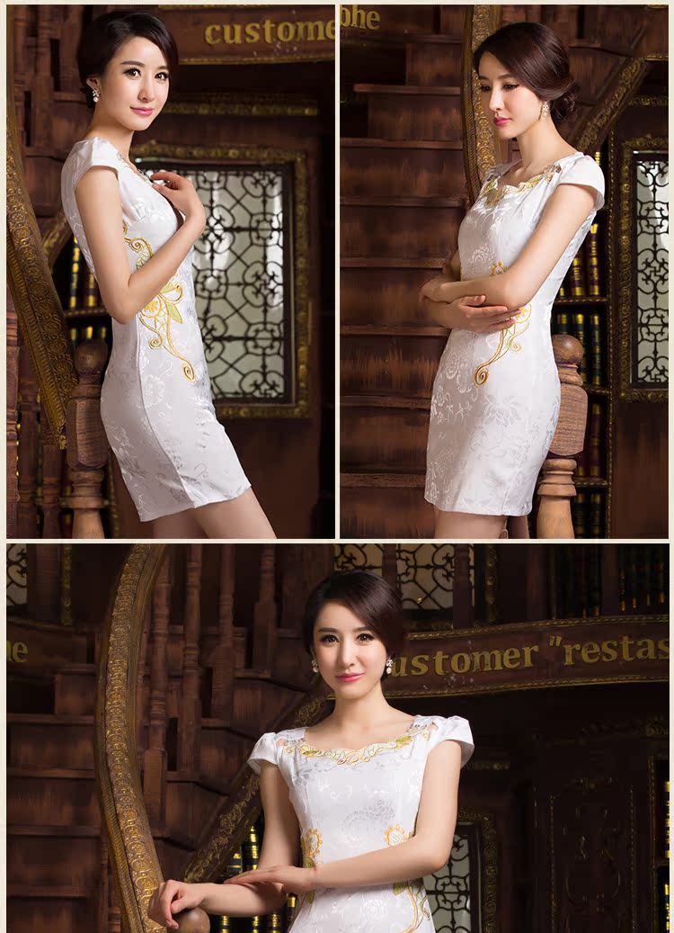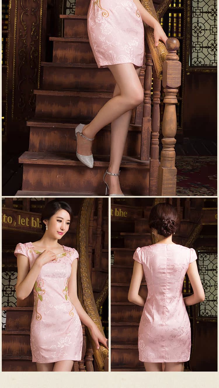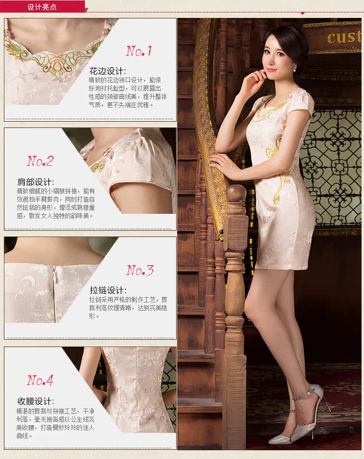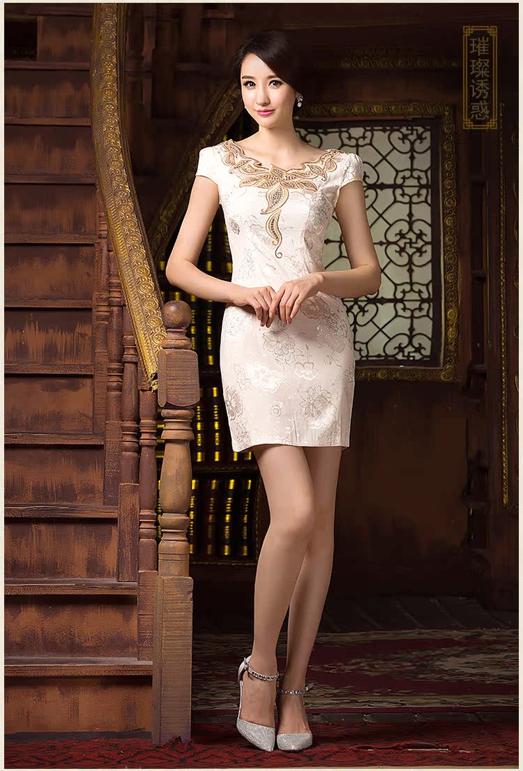 蝶戀 杏XXL日常旗袍裙改良時尚復古旗袍短款顯瘦修身優雅2016新款連衣裙夏裝