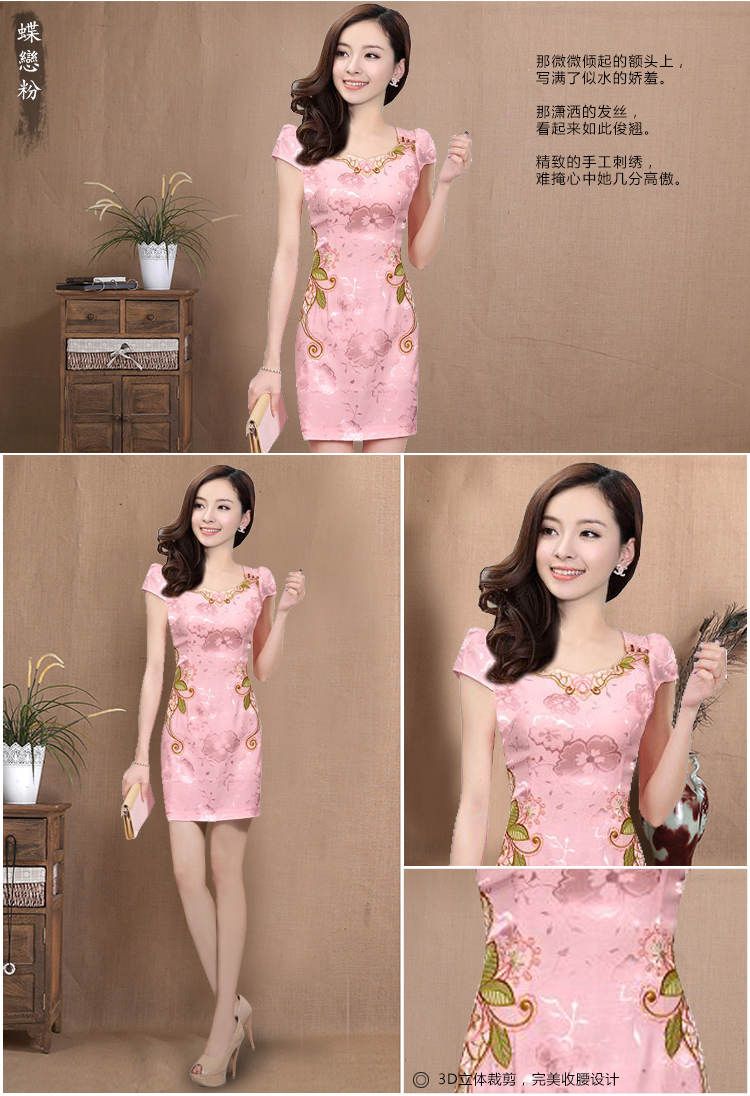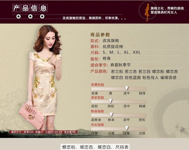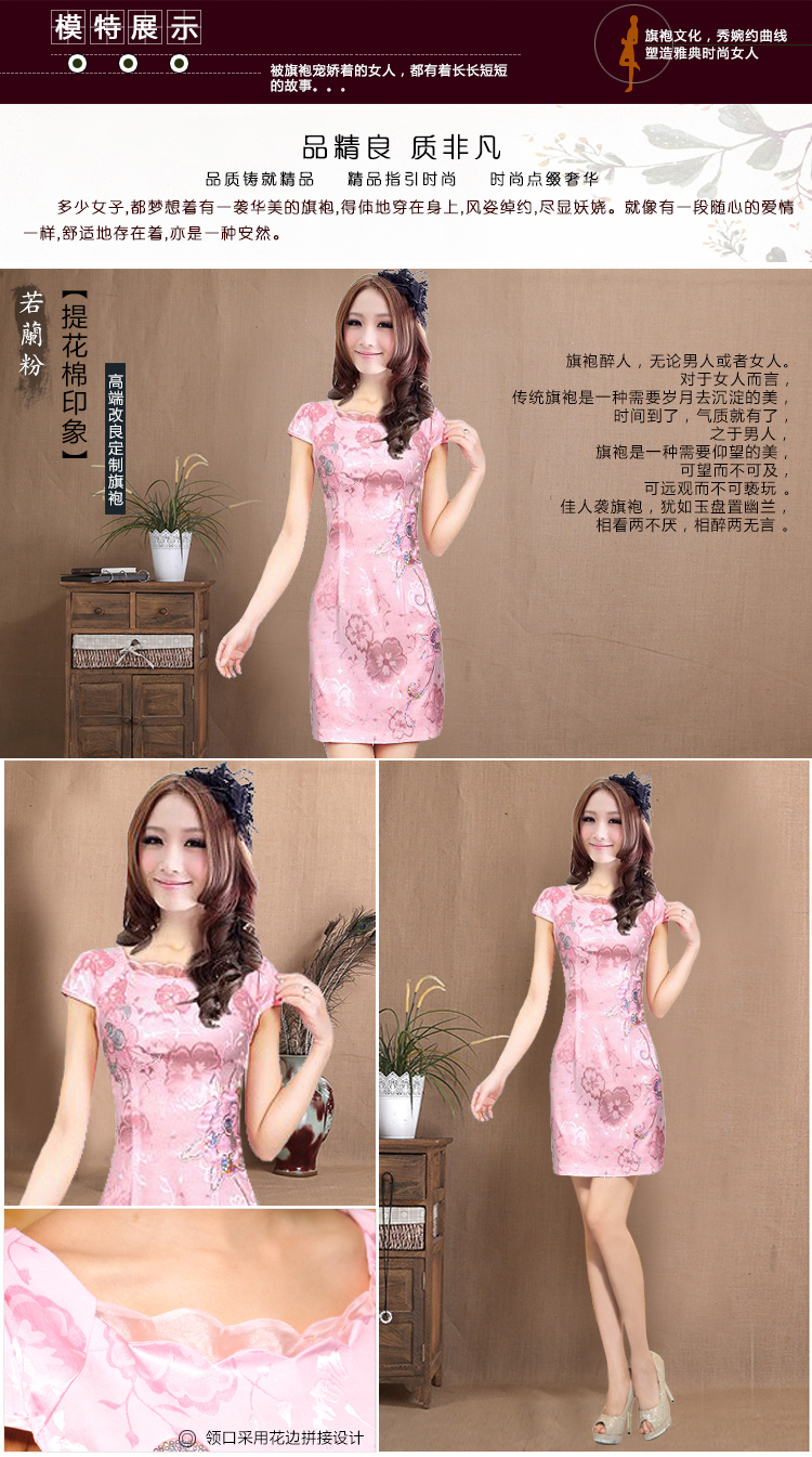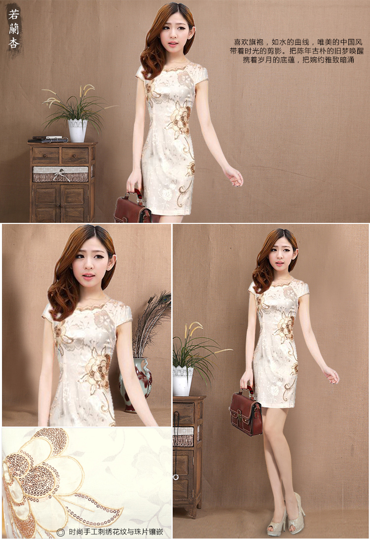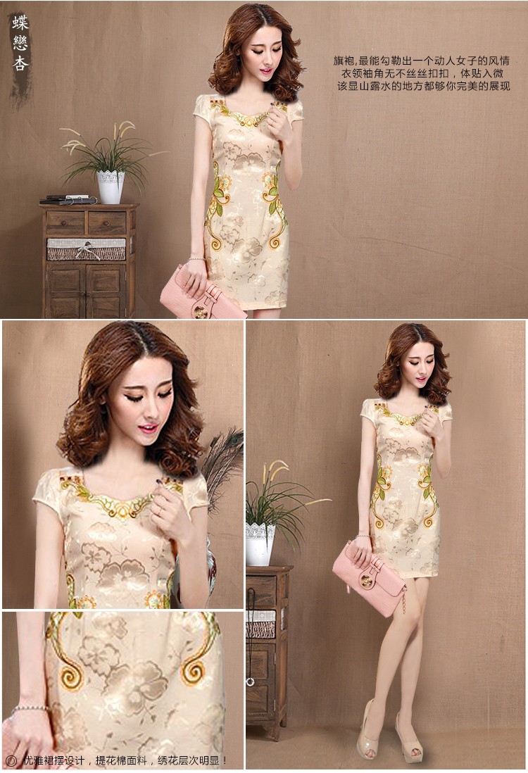 蝶戀 杏XXL(125斤-135左右)性感旗袍短款2016新款修身復古日常旗袍裙改良時尚夏季少女連衣裙