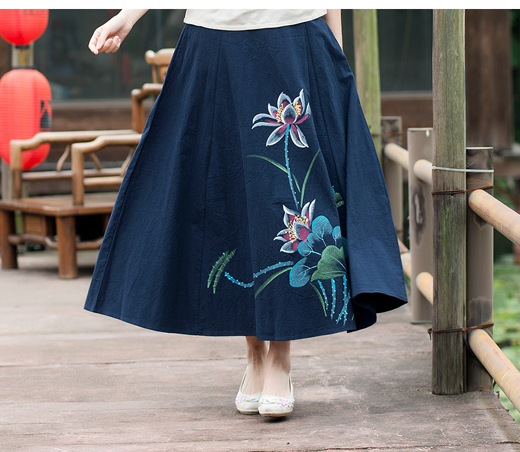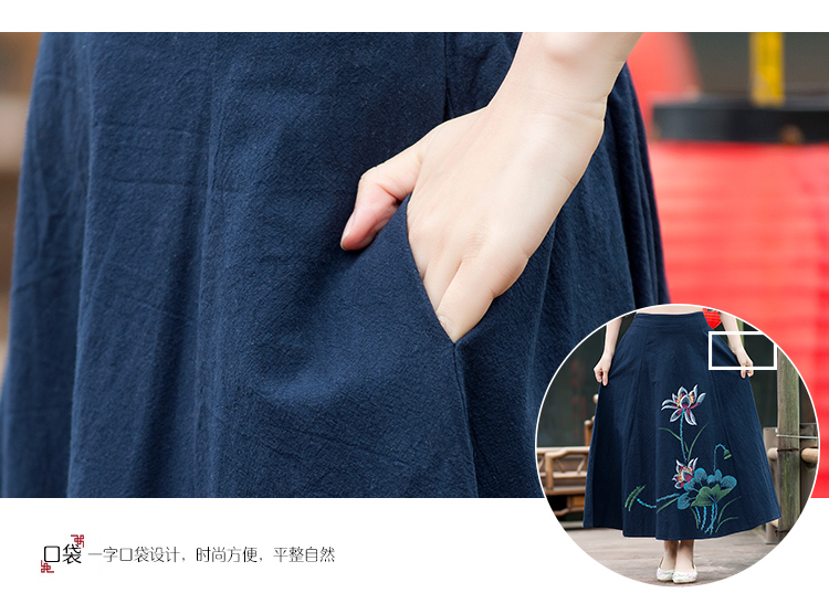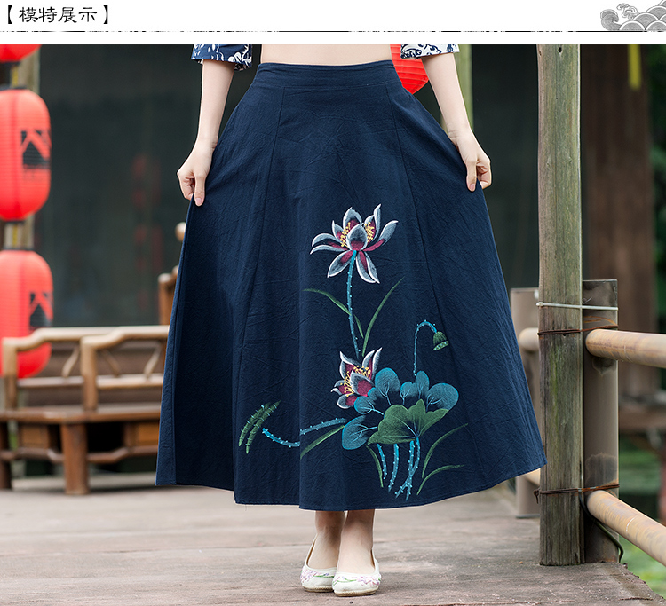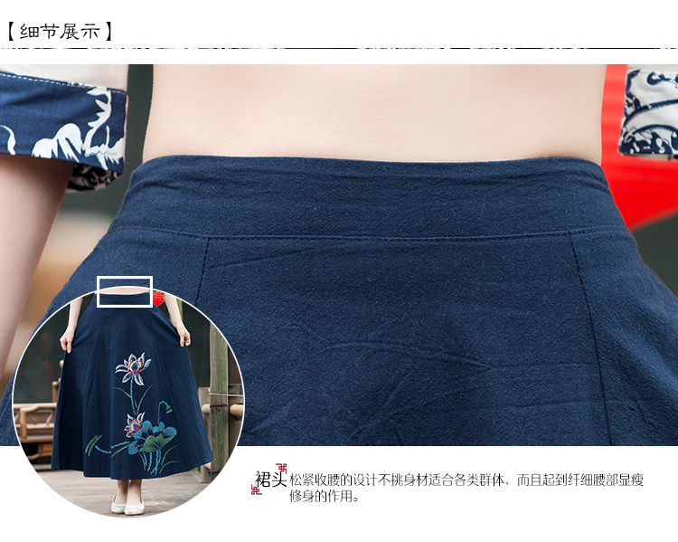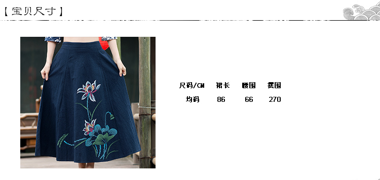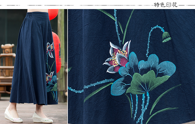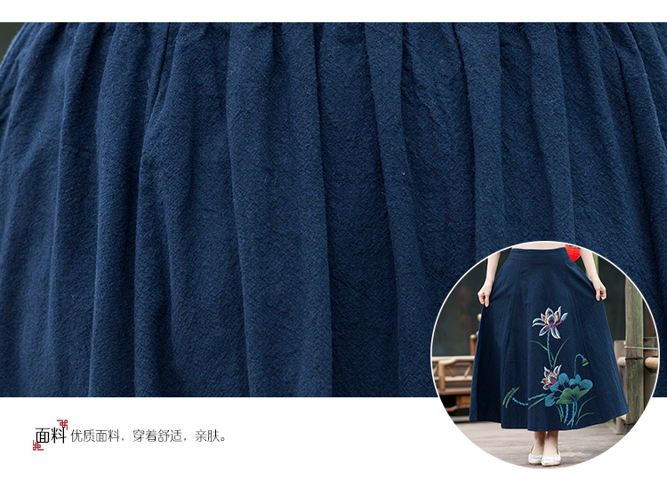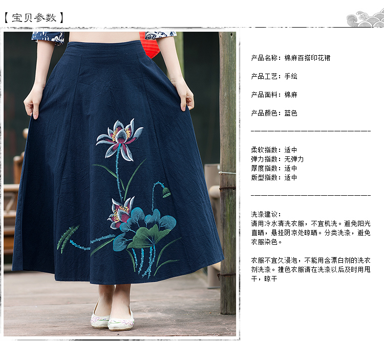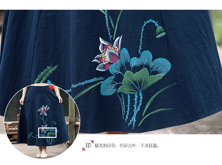 深藍色均碼2016夏季2016年夏季新款手繪印花棉麻大擺裙半身裙長裙