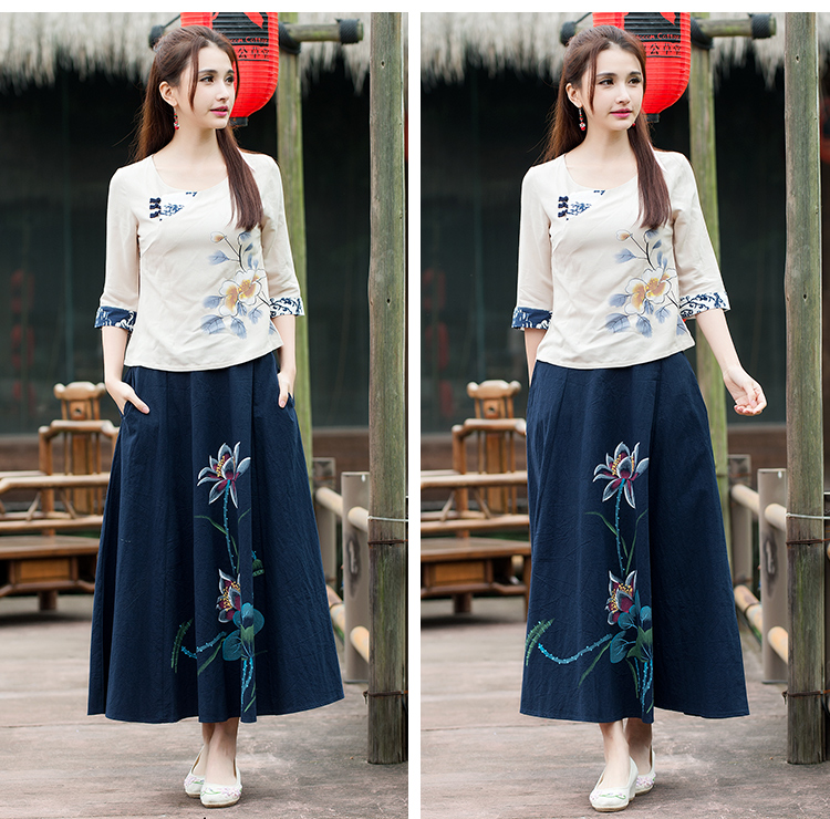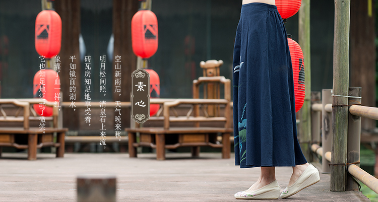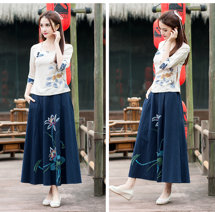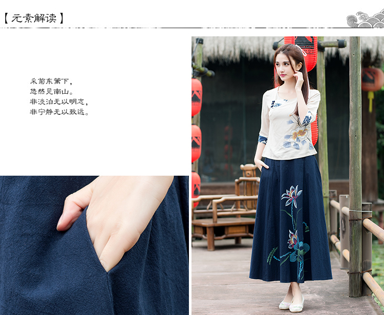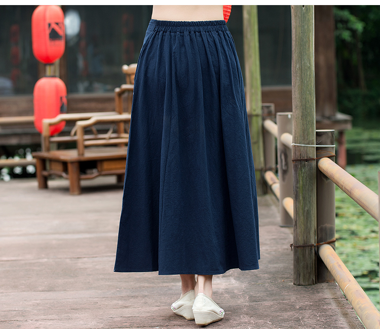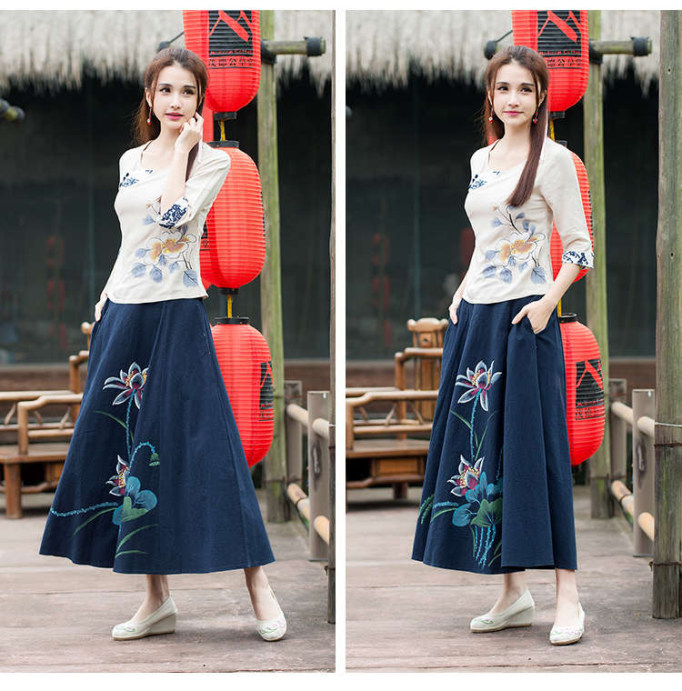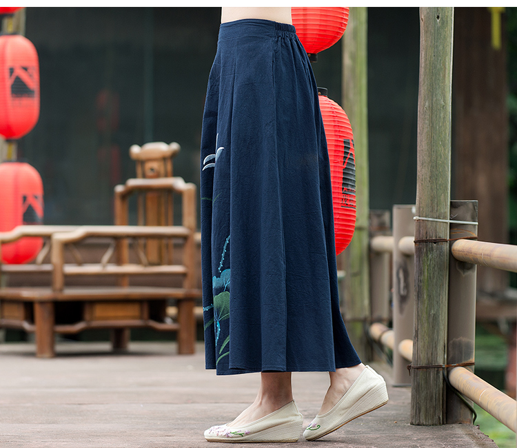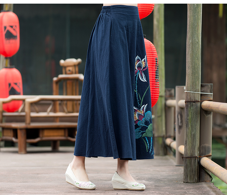 深藍色均碼2016夏季2016年夏季新款手繪印花棉麻大擺裙半身裙長裙
