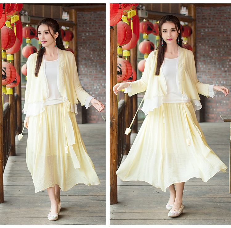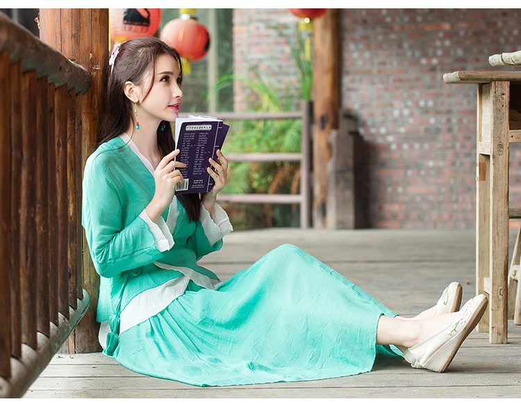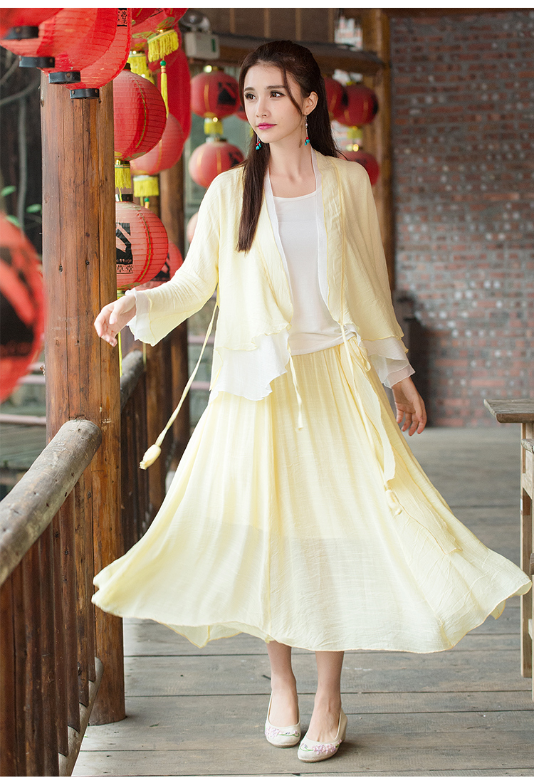 粉紅色均碼小清新2016春夏季棉麻森女系文藝范長飄帶素色半身松緊腰大擺長裙