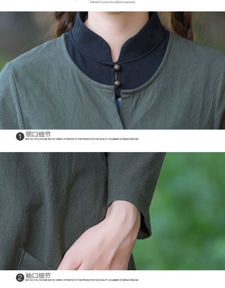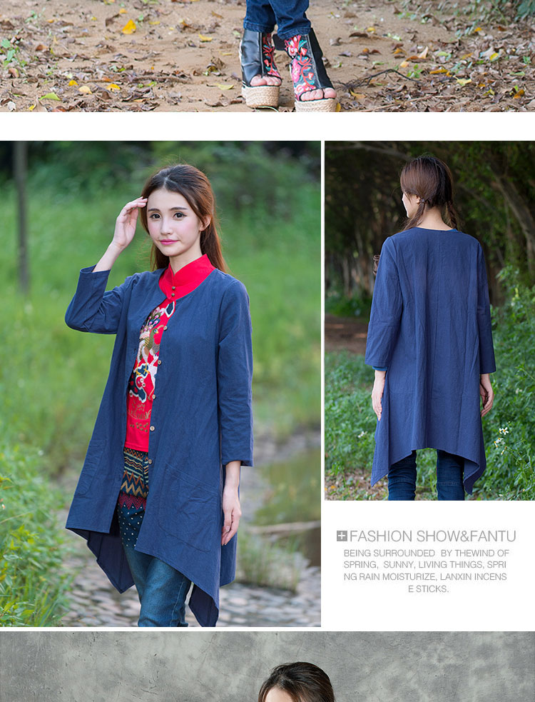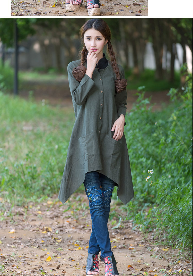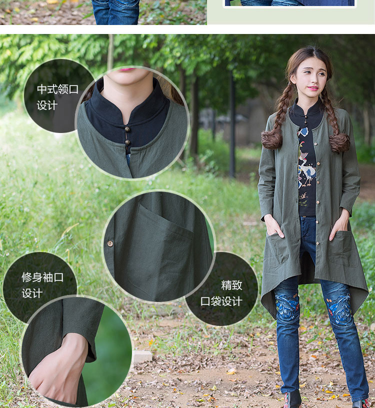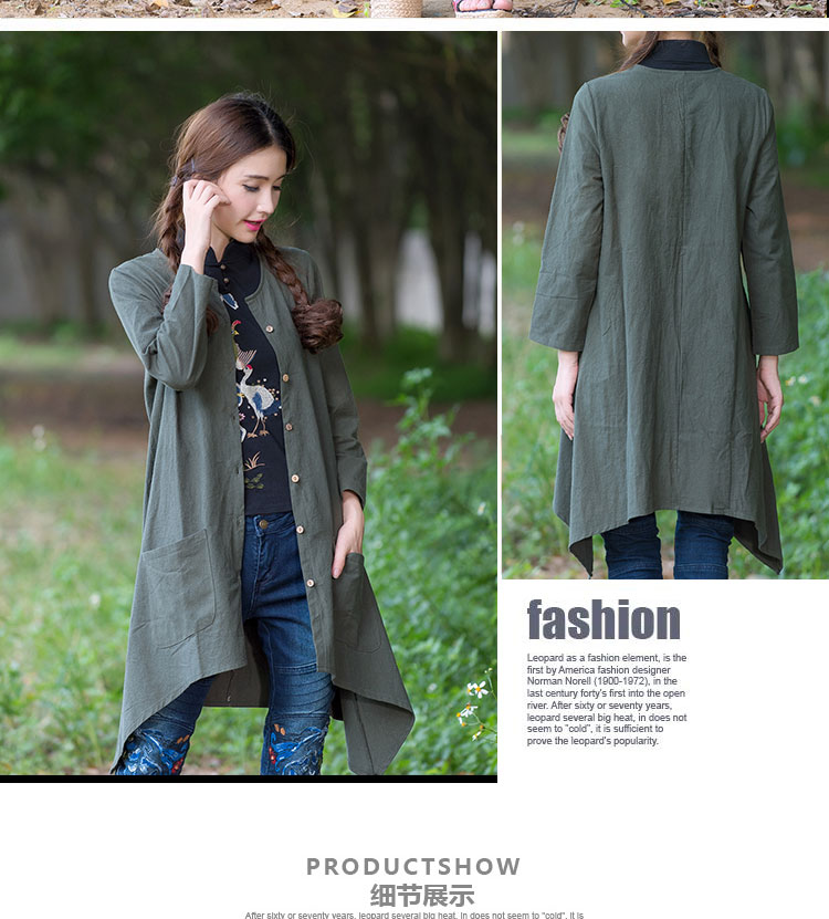 軍綠色M秋裝新款中國風復古民族風文藝范棉麻不規則下擺外套開衫風衣