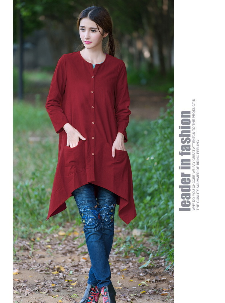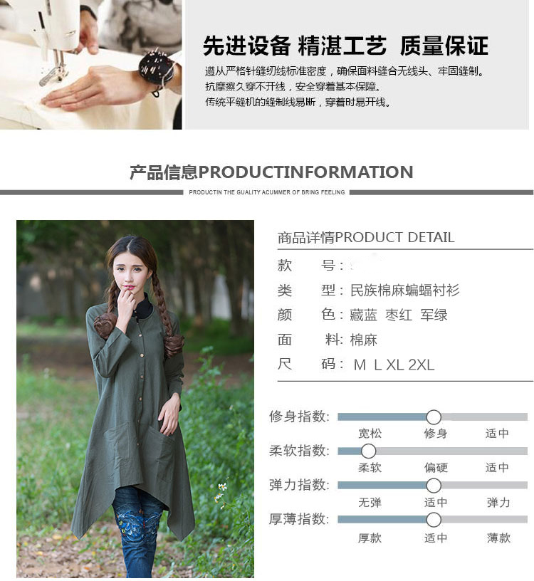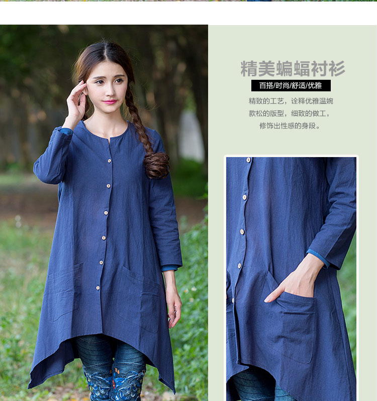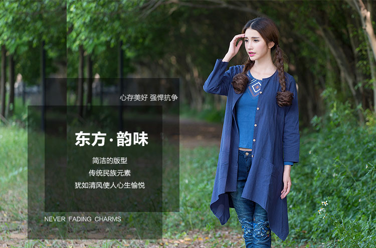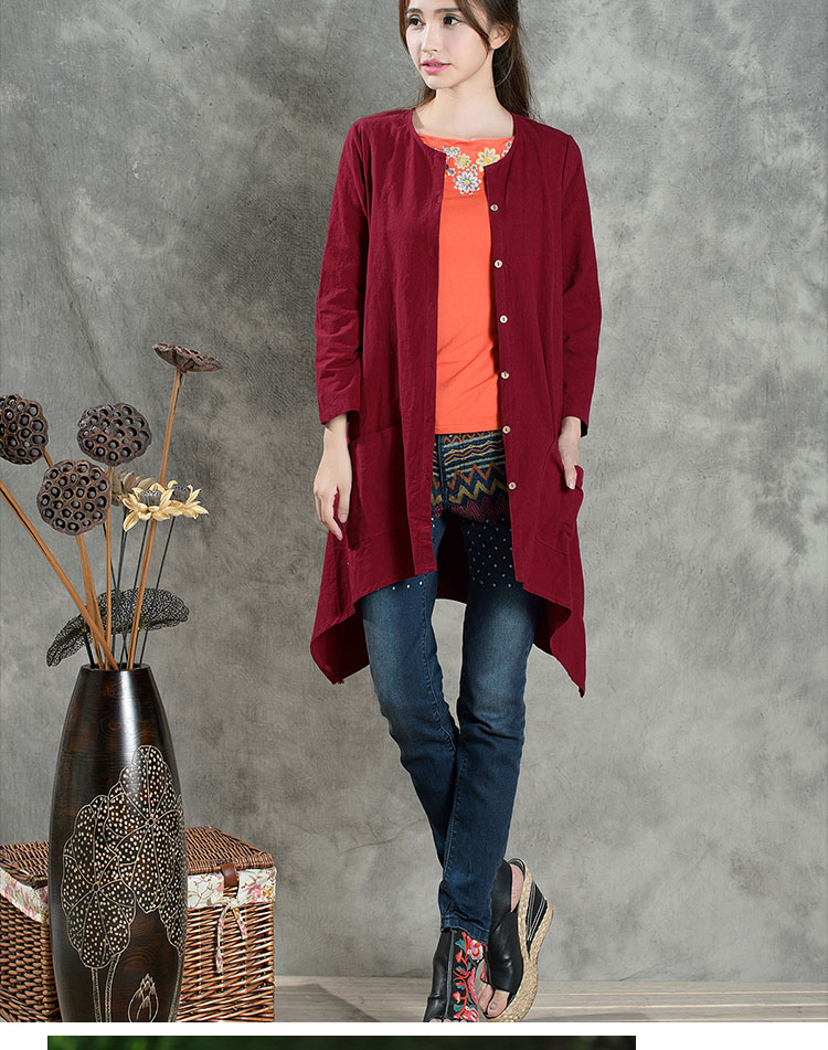 軍綠色M秋裝新款中國風復古民族風文藝范棉麻不規則下擺外套開衫風衣