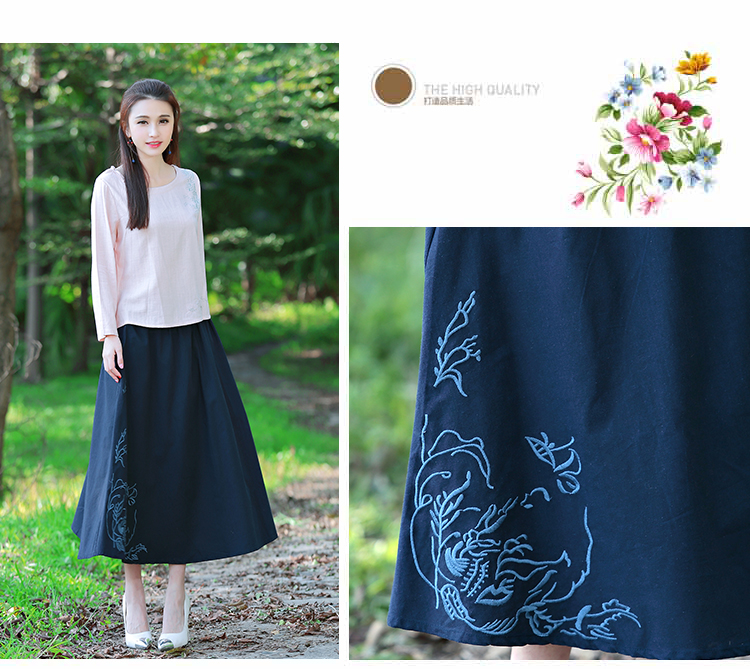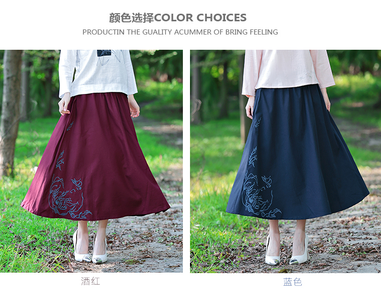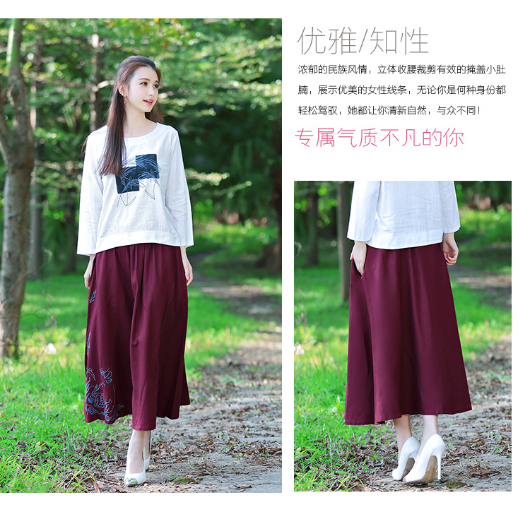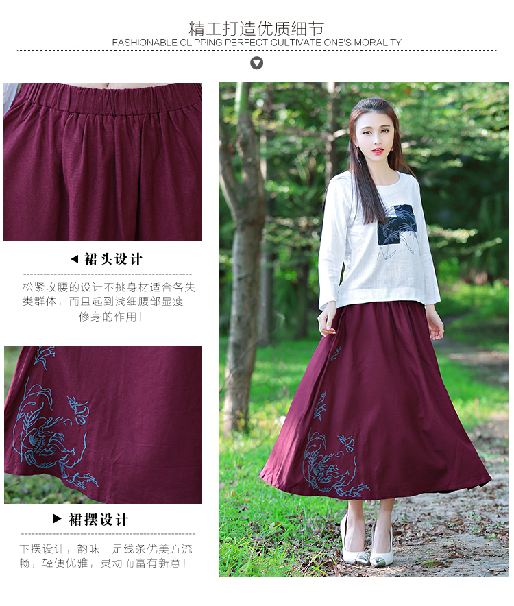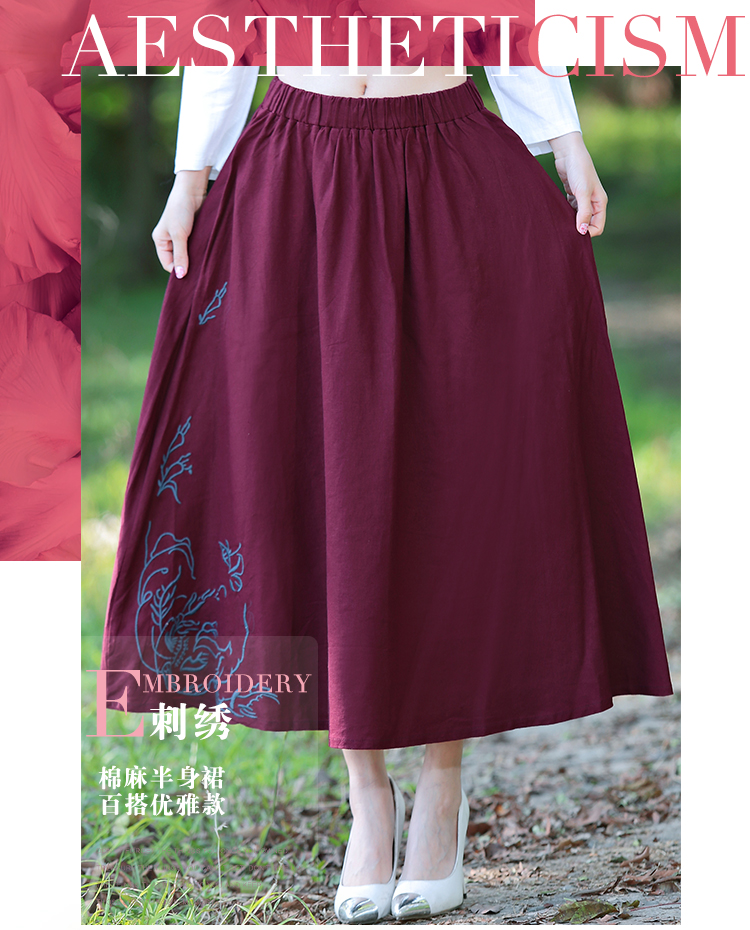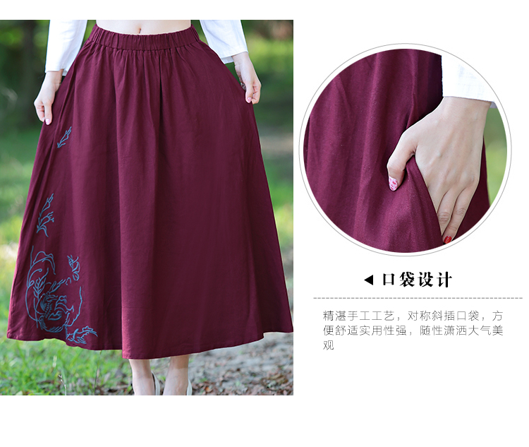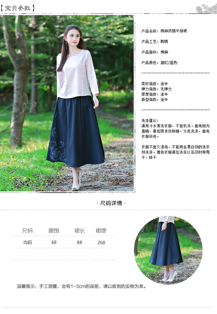 紅色均碼2016春季新款民族風刺繡棉麻半身裙民族風棉麻大擺百褶裙