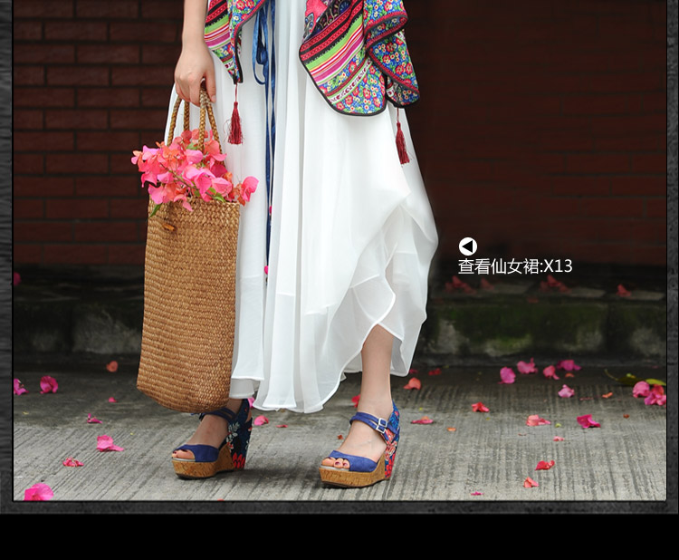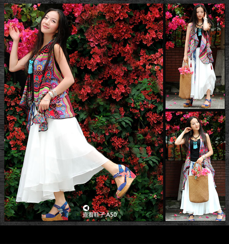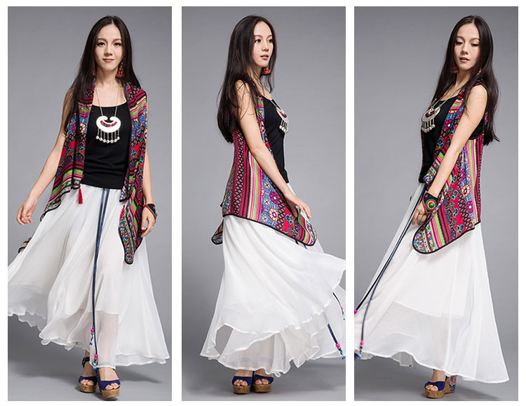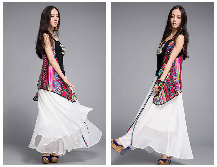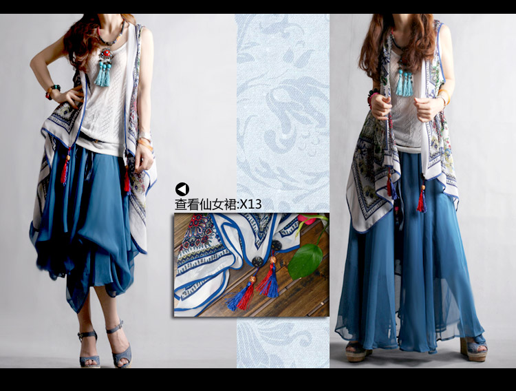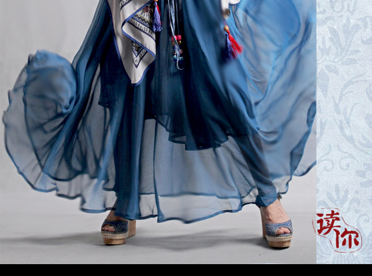 夏季新款中國風民族風文藝范長裙波西米亞女裝雪紡半身裙連衣裙