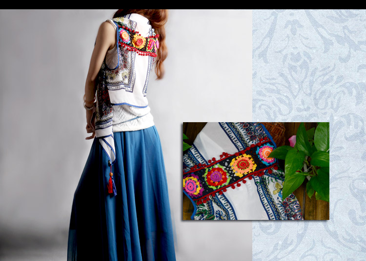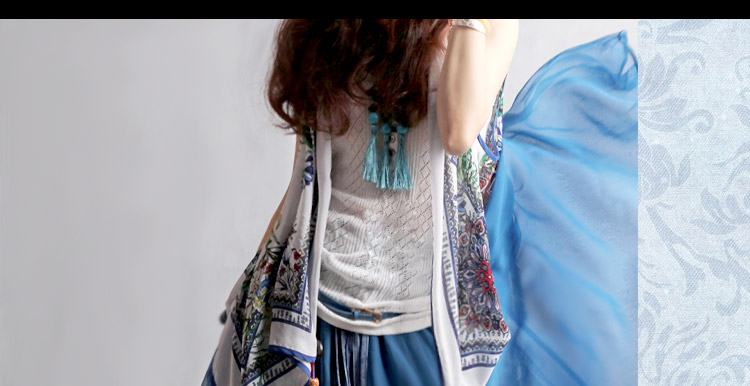 1001藍色手鐲均碼中國風民族風夏新款女裝無袖薄外套開衫坎肩外披風馬甲女披肩