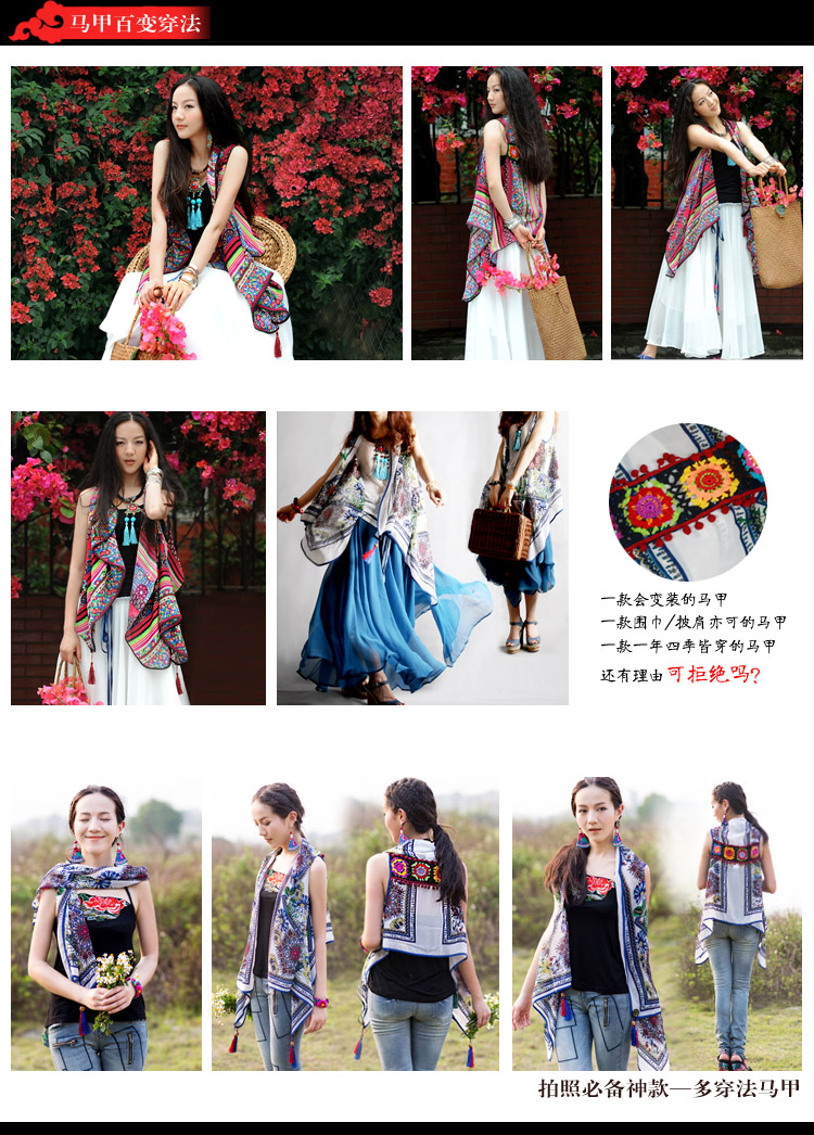 中國風民族風夏新款女裝無袖薄外套開衫坎肩外披風馬甲女披肩