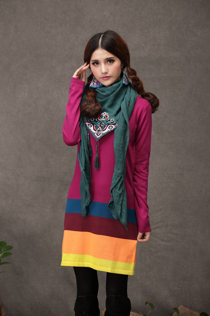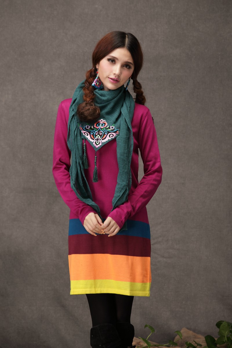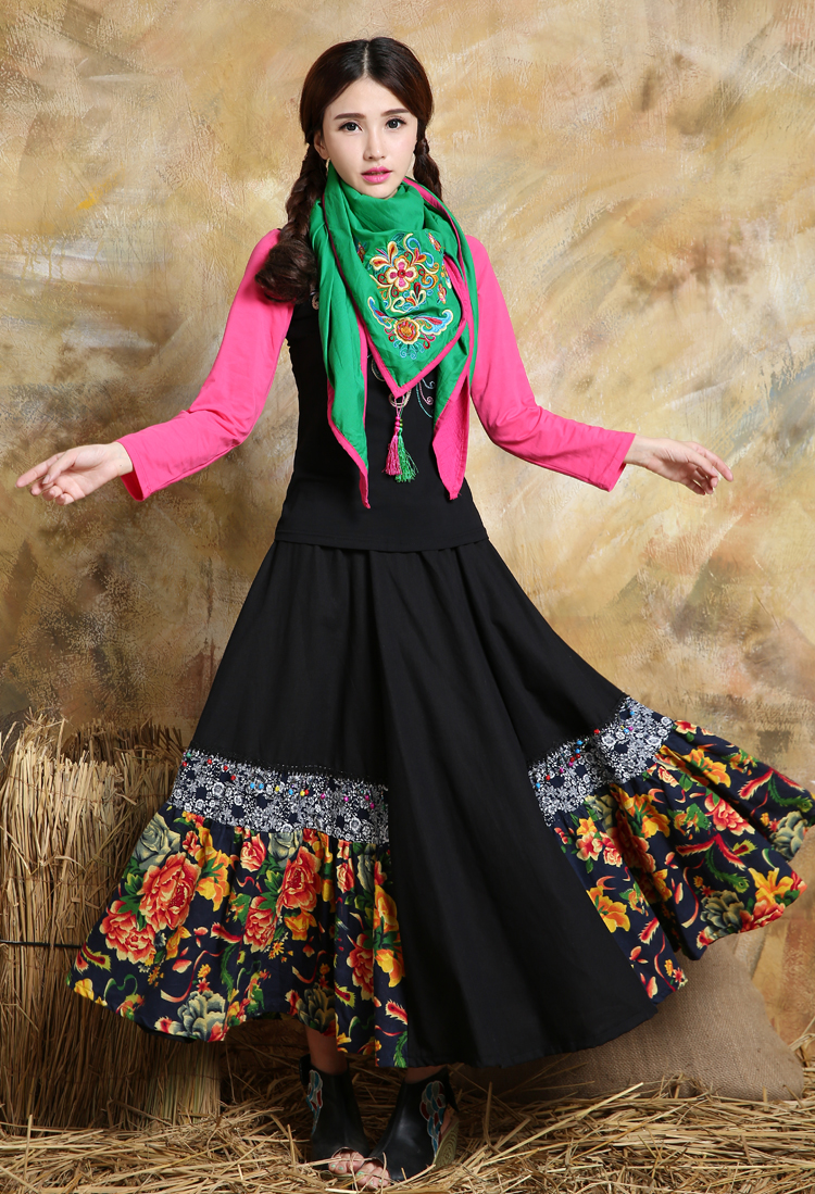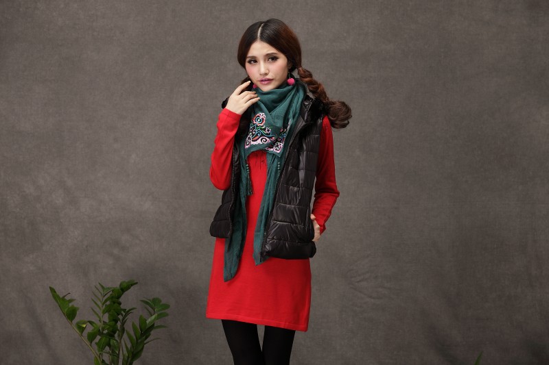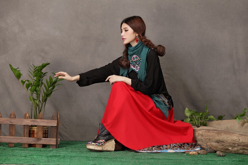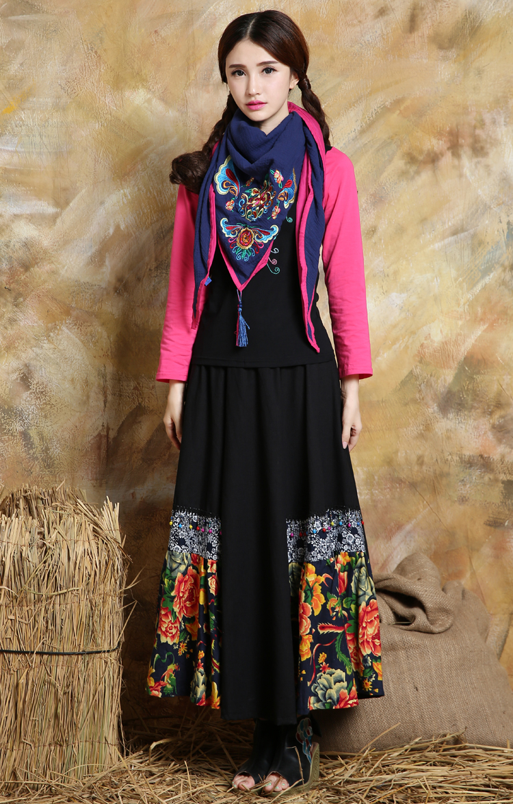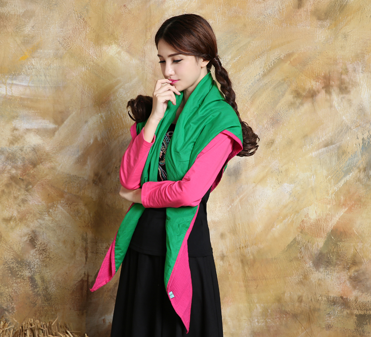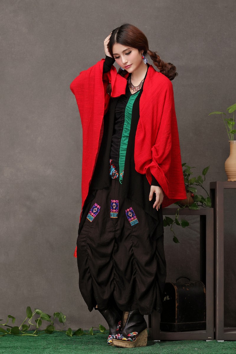 1888紅色新款秋款女裝配飾民族風亞麻面料三角圍巾貼布對角繡花大方巾流蘇