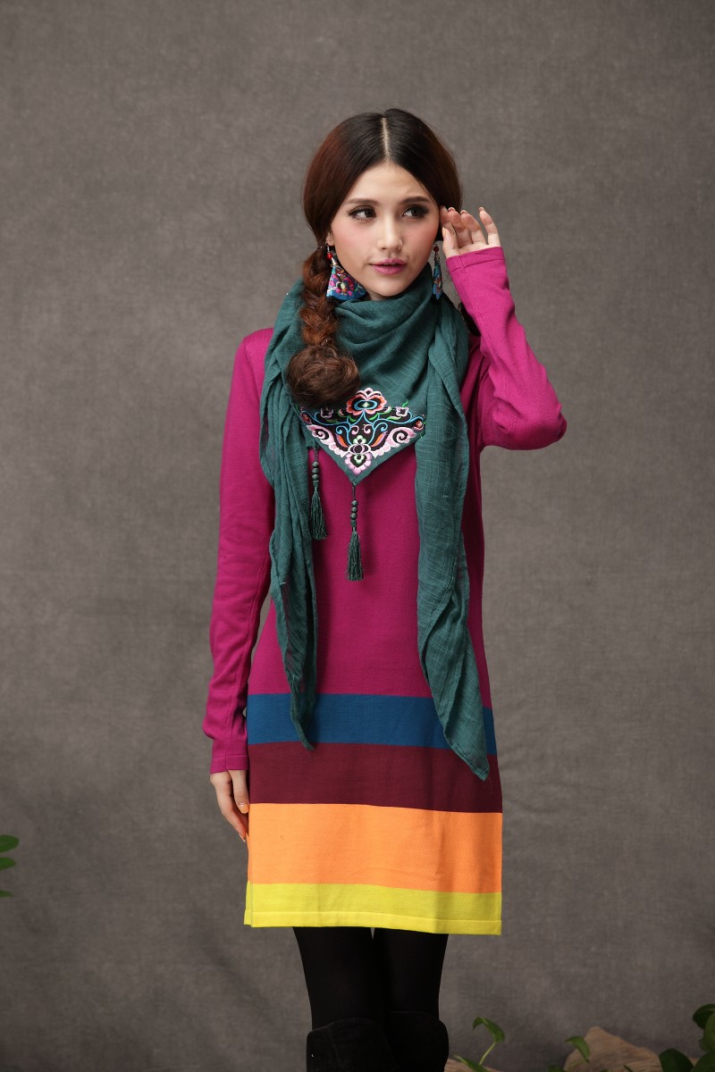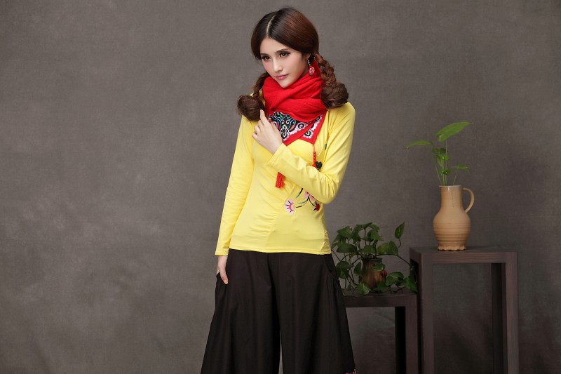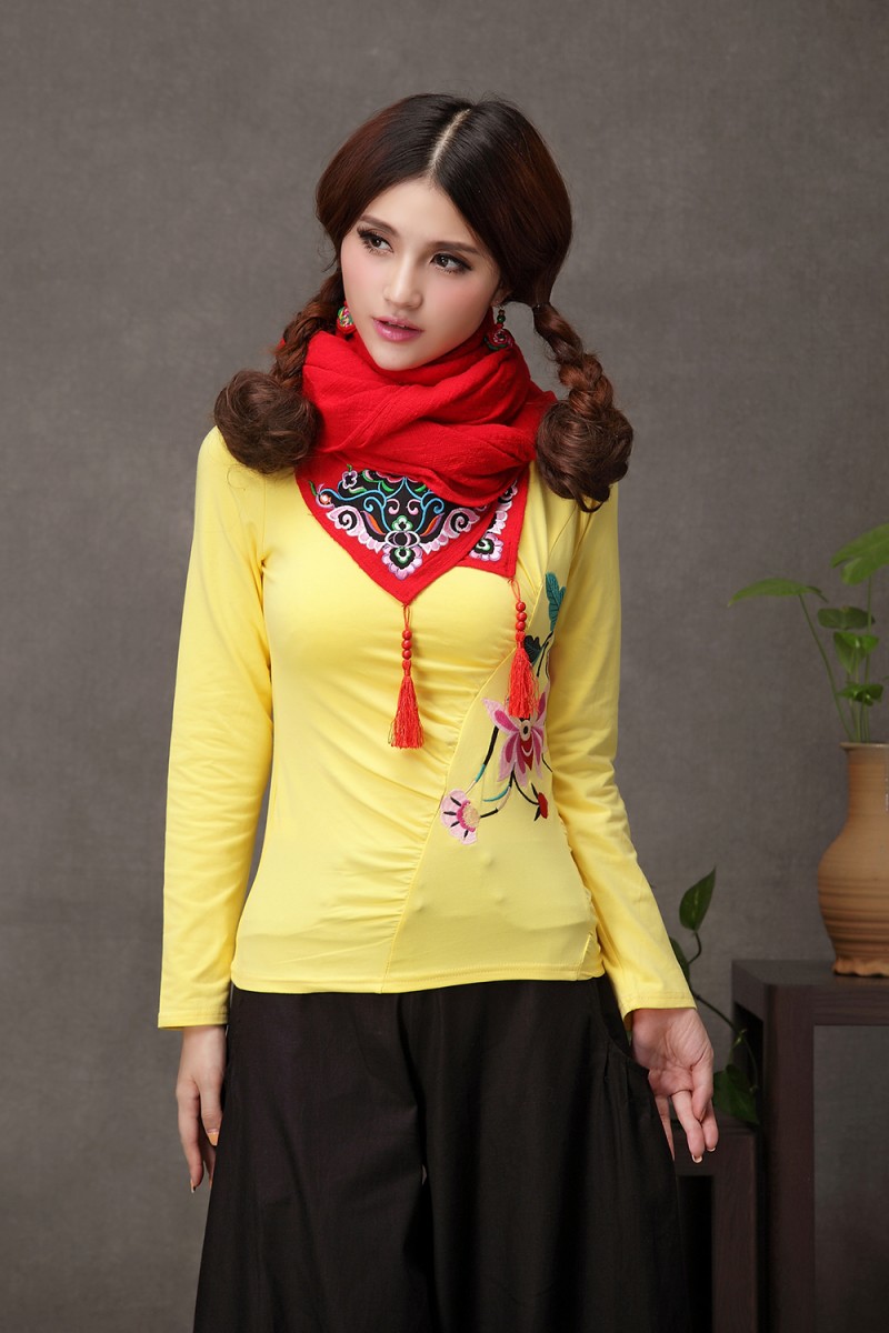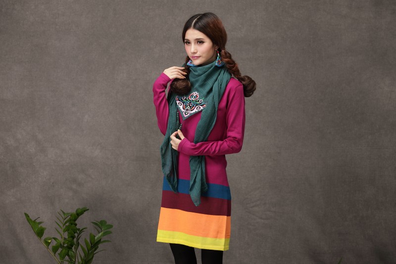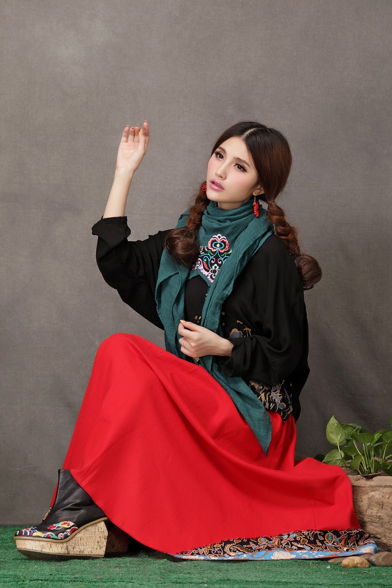 1888紅色春秋冬新款棉麻復古中國風民族風女裝飾品刺繡花圍巾披肩女