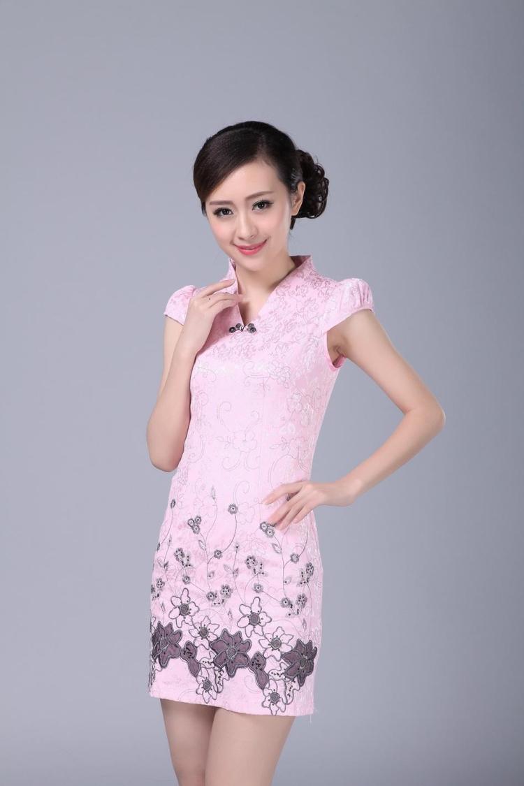 101款粉色XS建議80斤左右新款旗袍春日常旗袍短款連衣裙夏裝2016女士旗袍禮服改良夏天旗袍