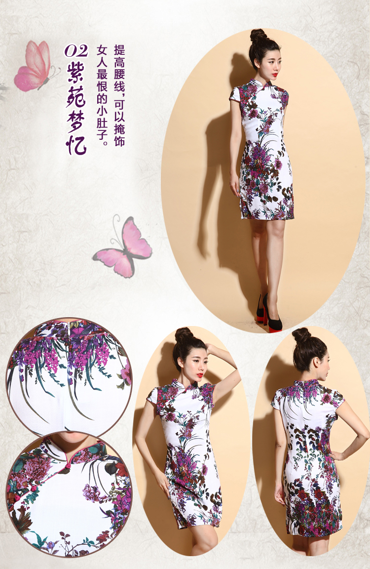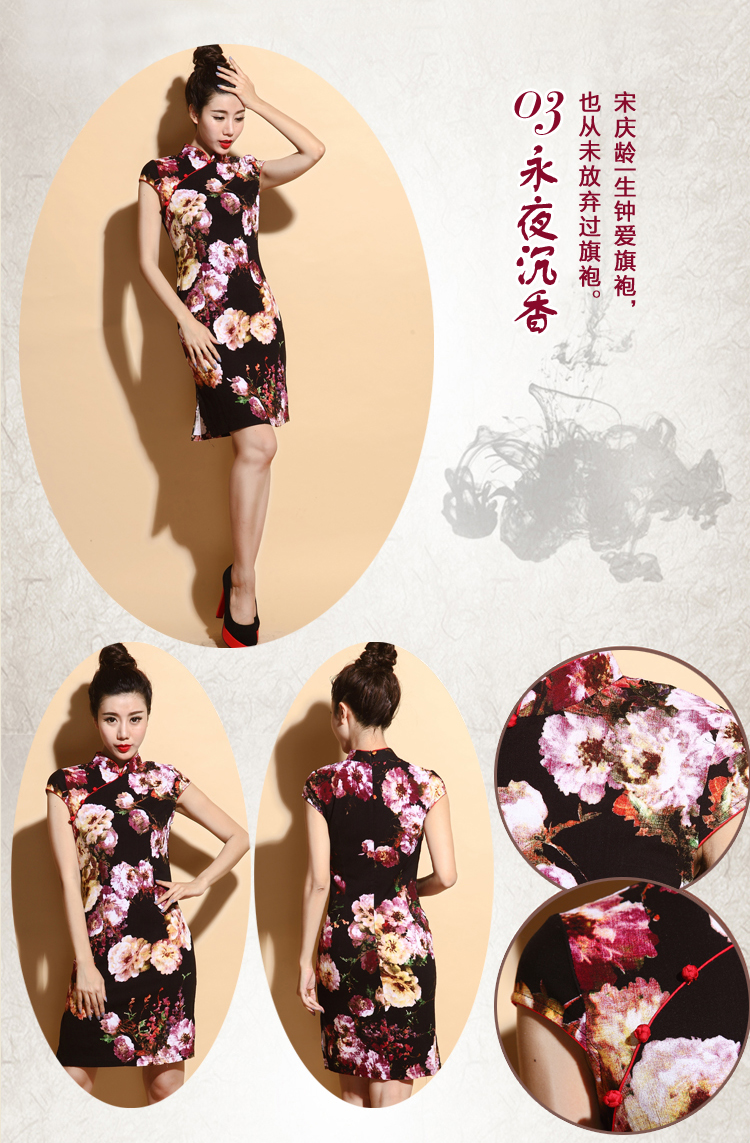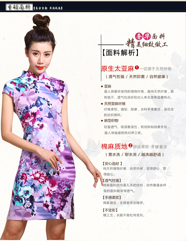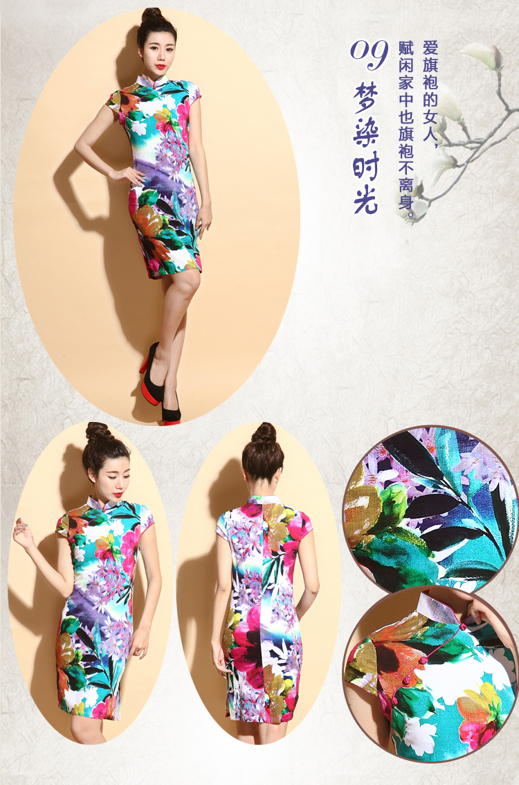 01-青黛花畔S(標準碼)伊甸之初 2016新款旗袍大碼棉麻短款側開叉顯瘦優雅修身黑花色