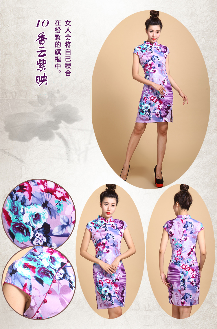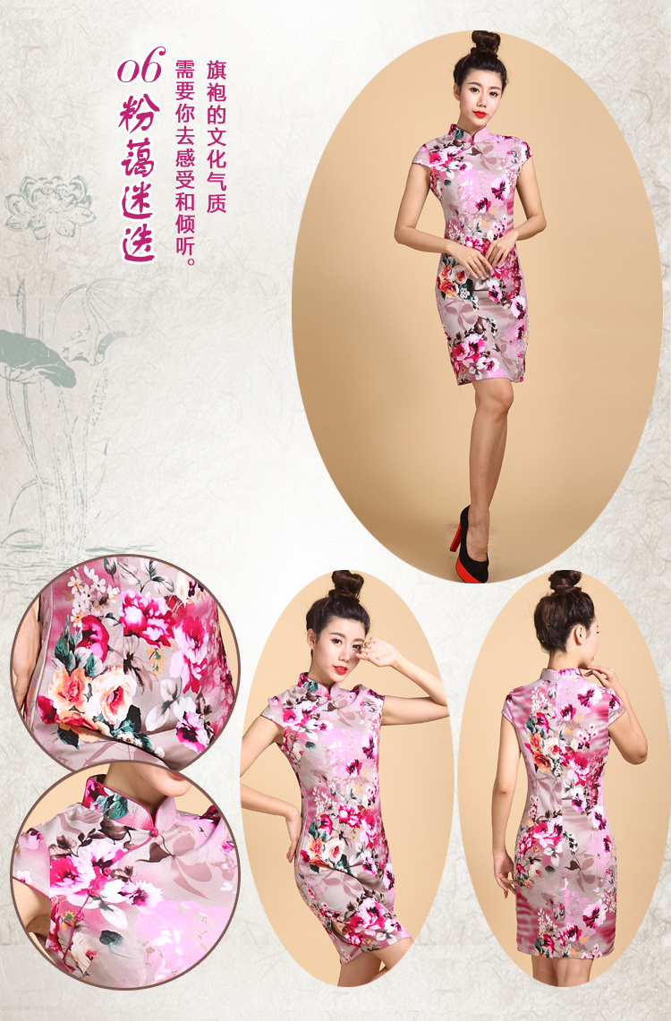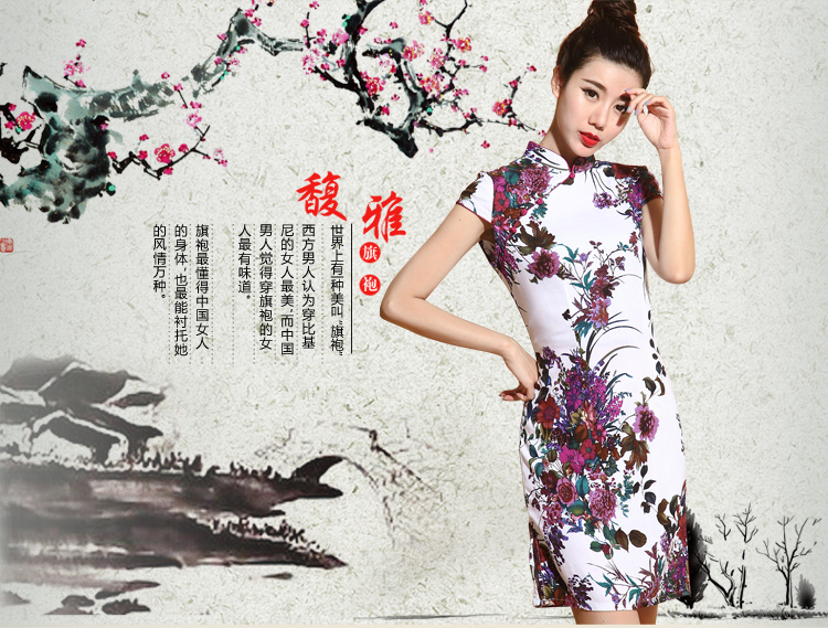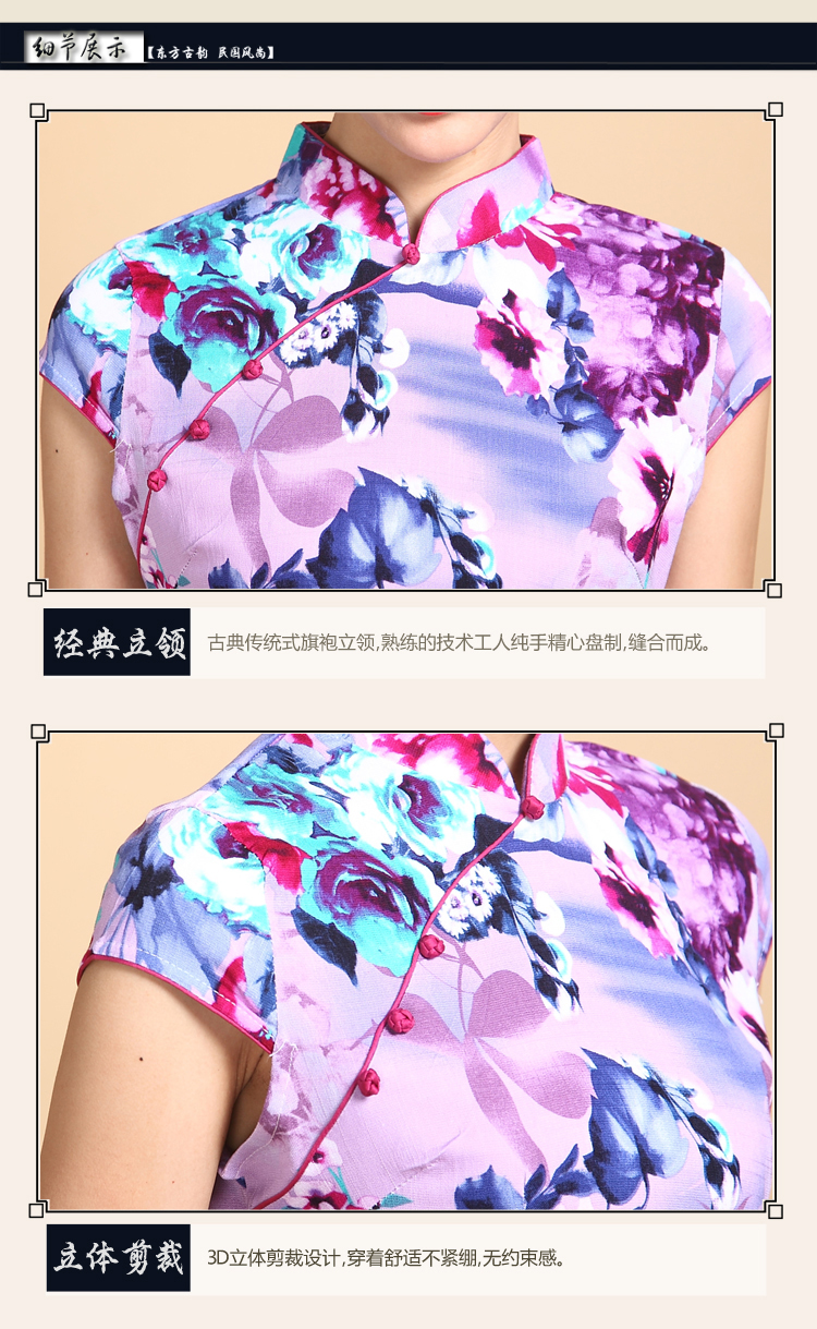 01-青黛花畔S(標準碼)伊甸之初 2016新款旗袍大碼棉麻短款側開叉顯瘦優雅修身黑花色