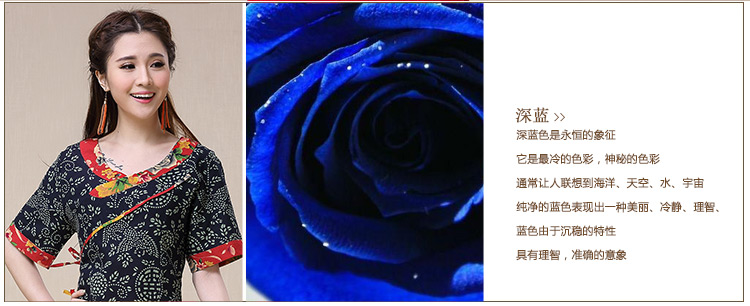 藍色XXL復古民族風襯衣短袖圓領花色印花拼接襯衣不規則下擺鳳凰牡丹