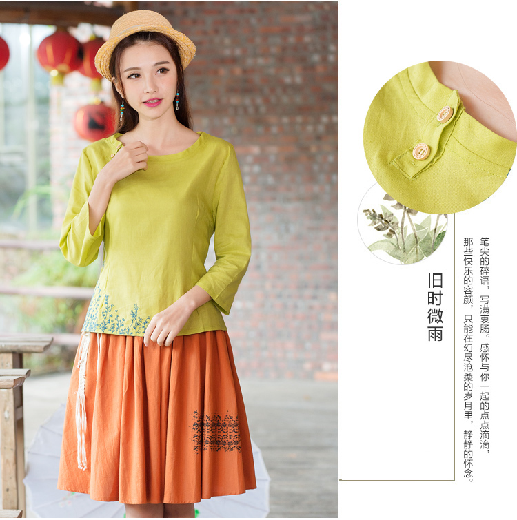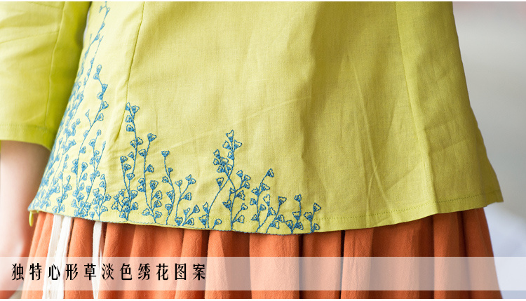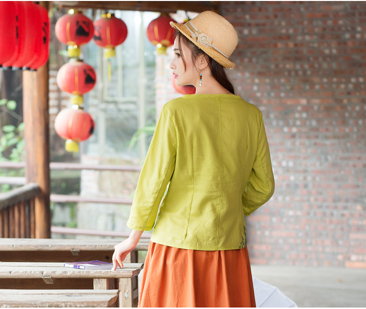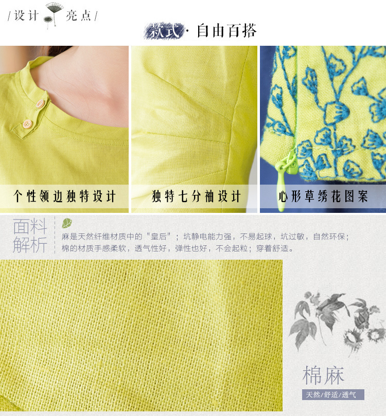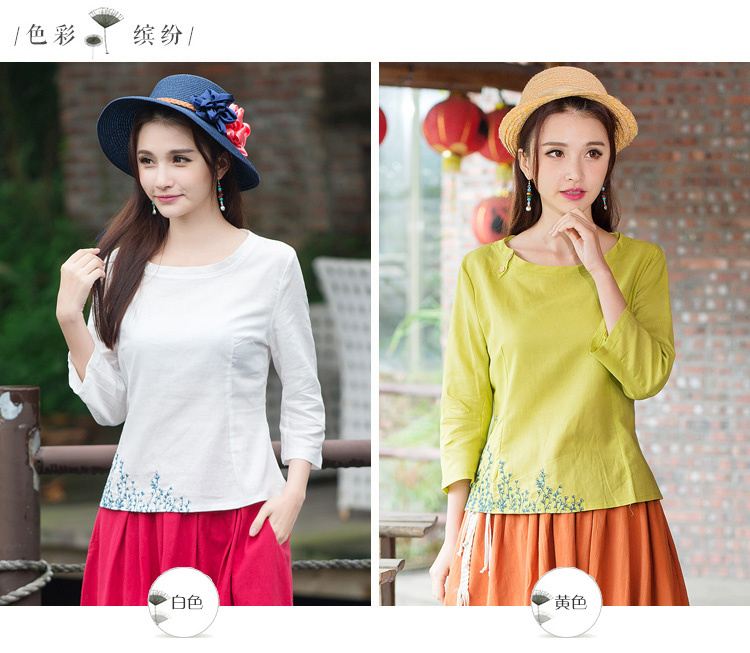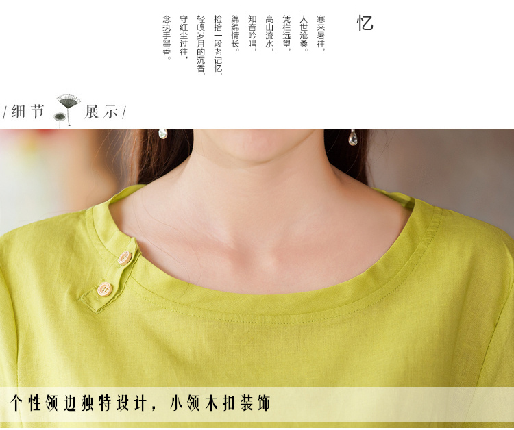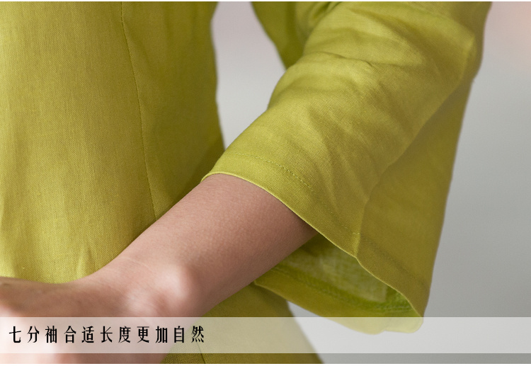 黃色XXL古色夏裝新款古色棉麻修身襯衣白色旗袍上衣立領盤扣七分袖唐裝女