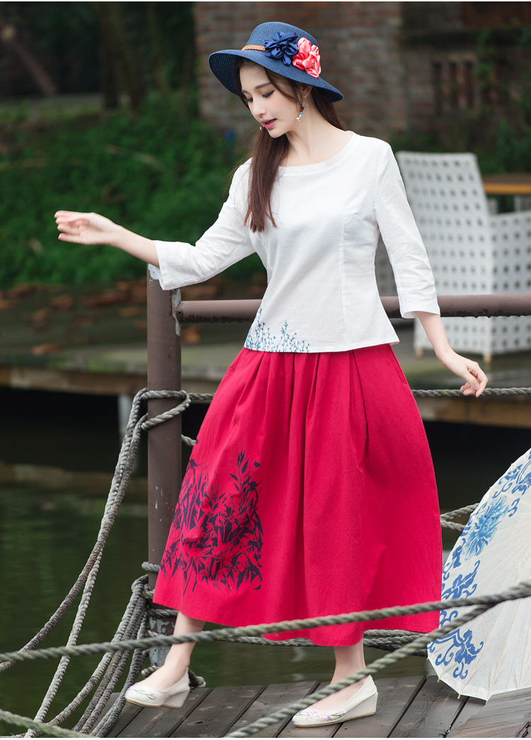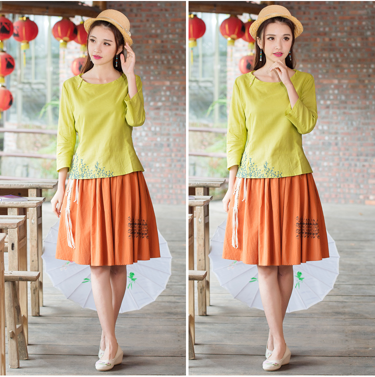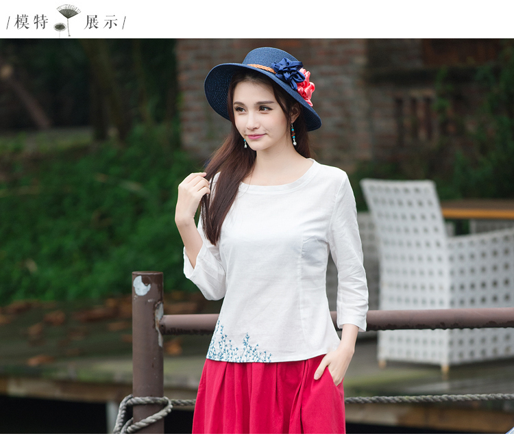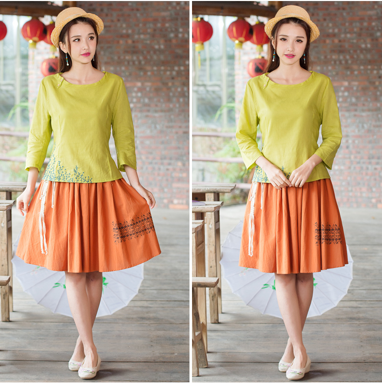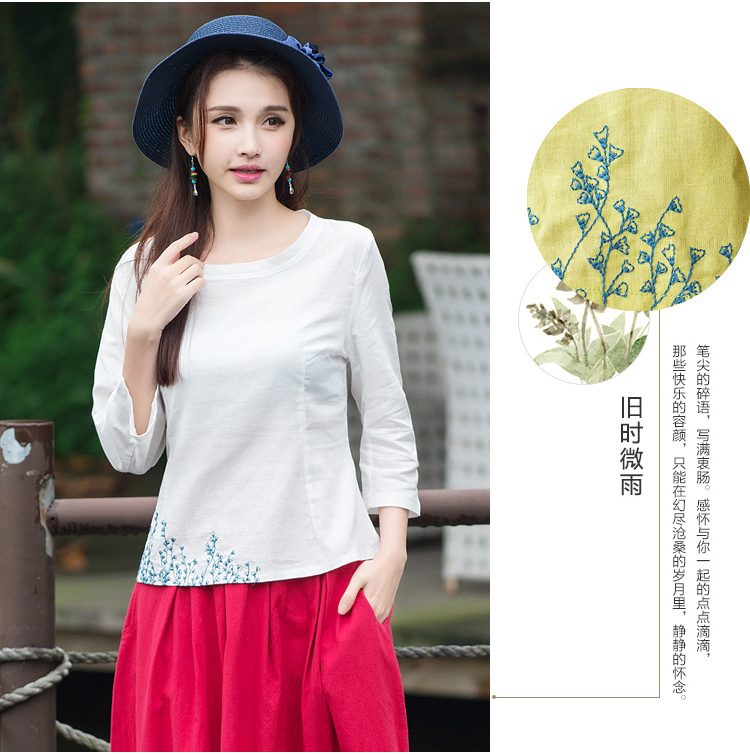 黃色XXL古色夏裝新款古色棉麻修身襯衣白色旗袍上衣立領盤扣七分袖唐裝女