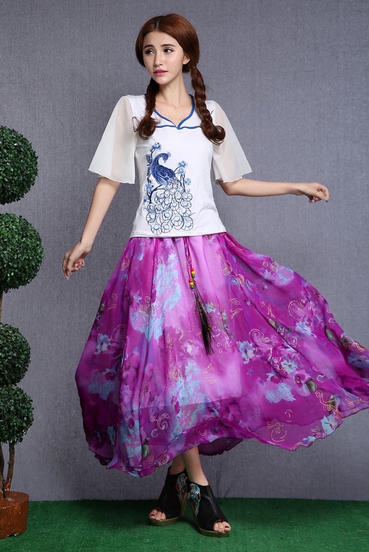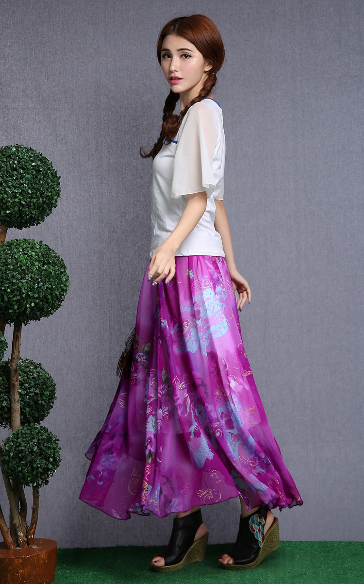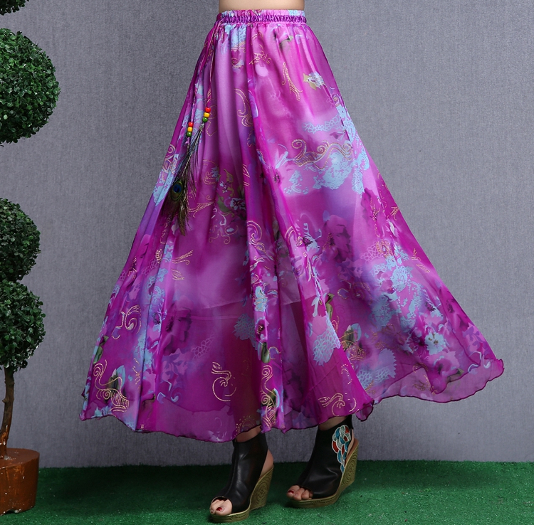 湖藍色均碼古香春夏雪紡顯瘦學院風長裙大碼高腰大擺中長款沙灘半身裙雅羊人