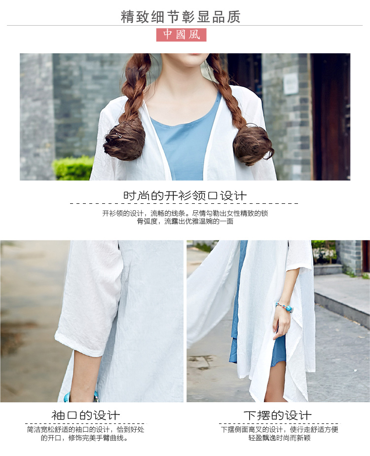 白色均碼原創棉麻夏外搭不規則下擺百搭文藝范女薄外套披肩中長款女士開衫