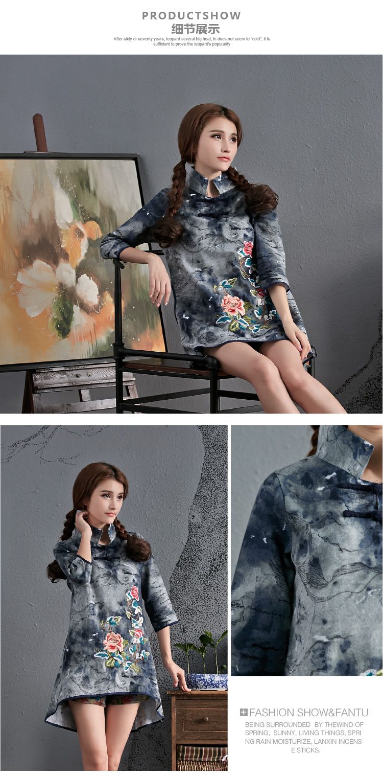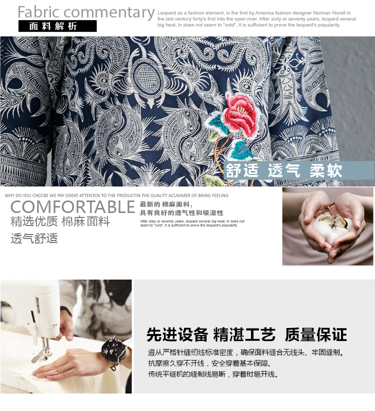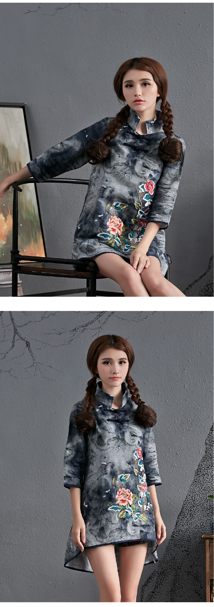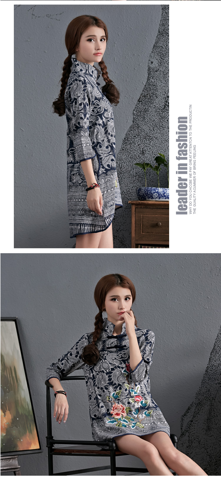 蠟染繡花均碼夏新款女裝復古民族風刺繡花棉麻中袖翻領盤扣喇叭下擺襯衫連衣裙
