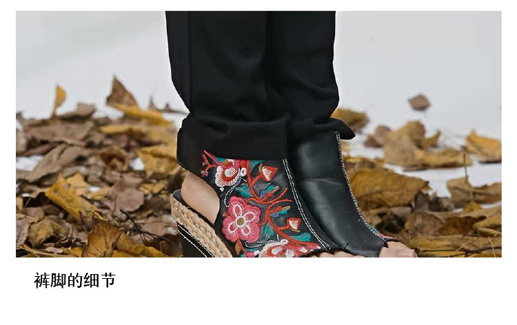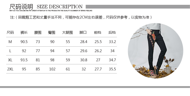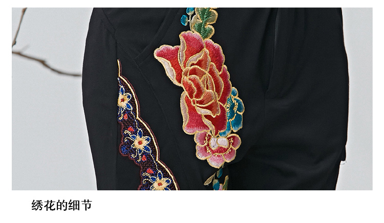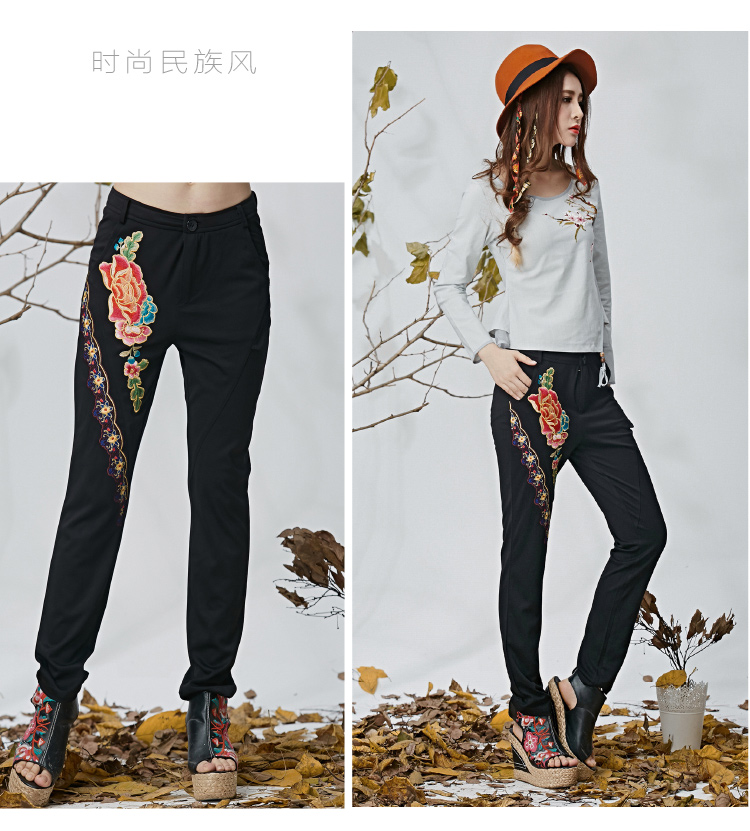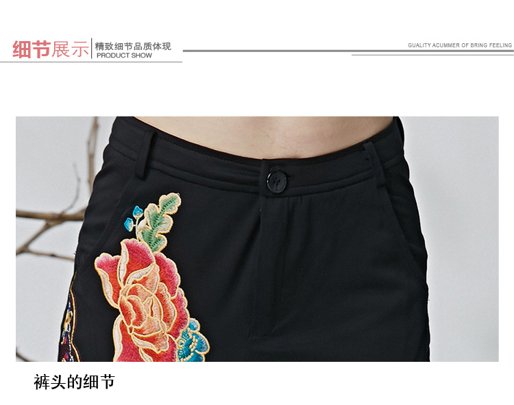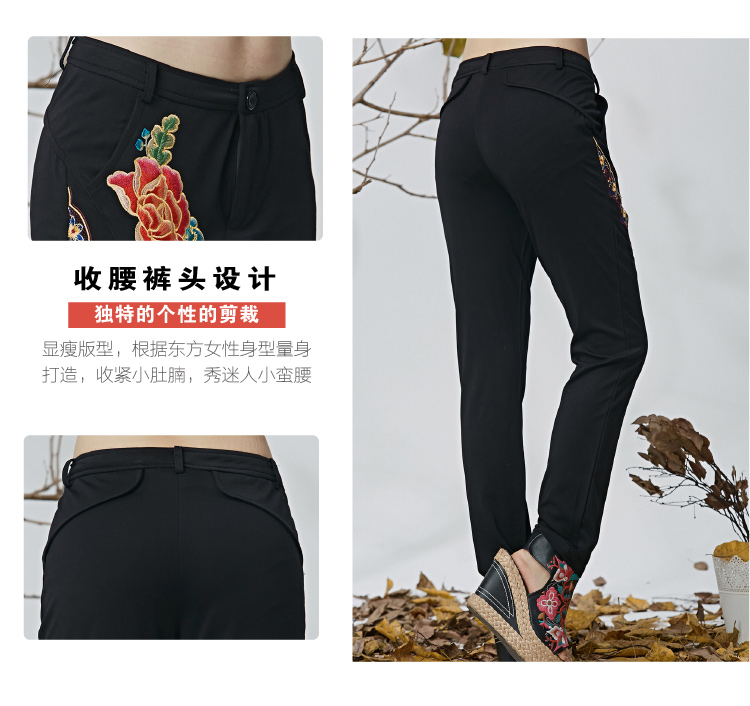 黑色M春款女裝秋冬褲民族風中國風復古繡花直筒褲休閑版型百搭款休閑褲