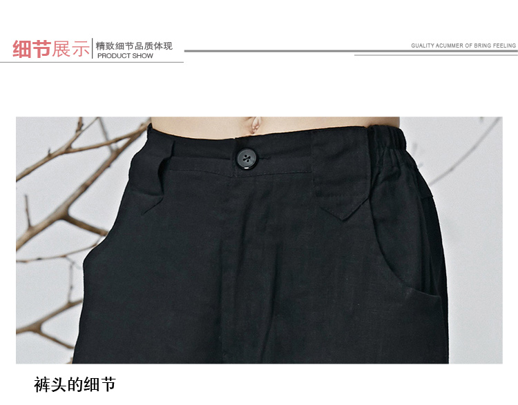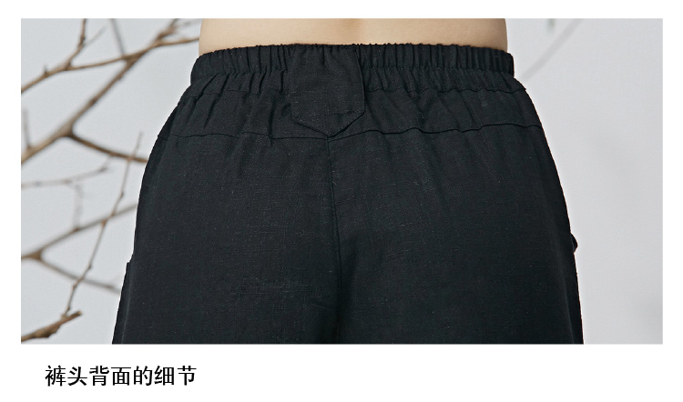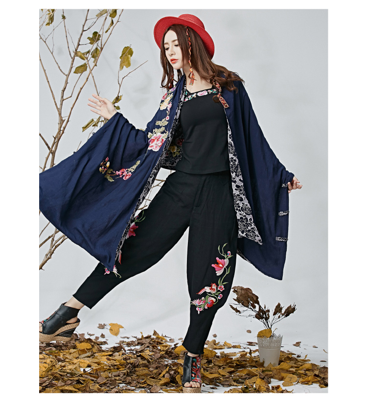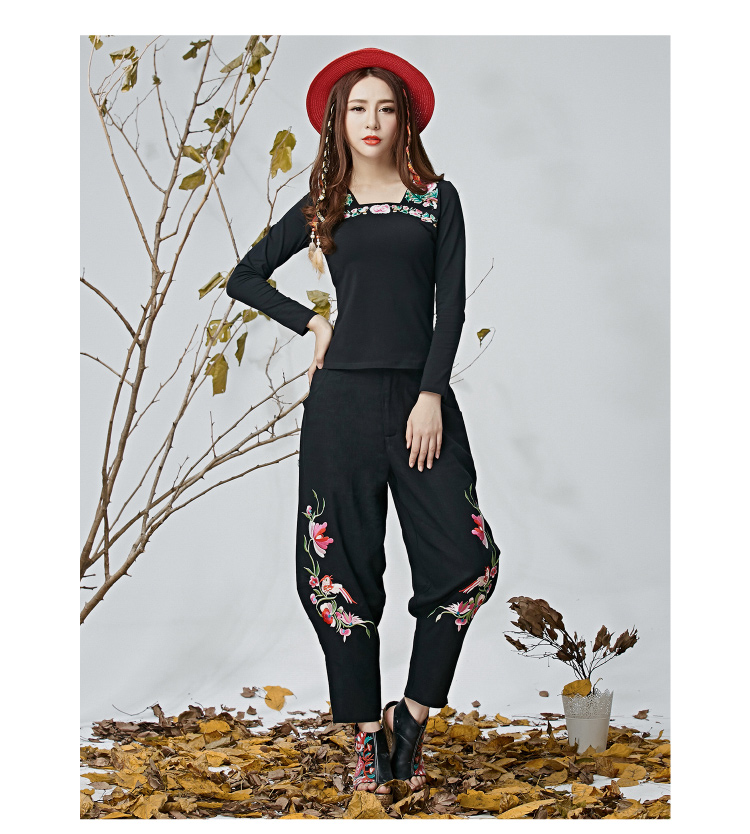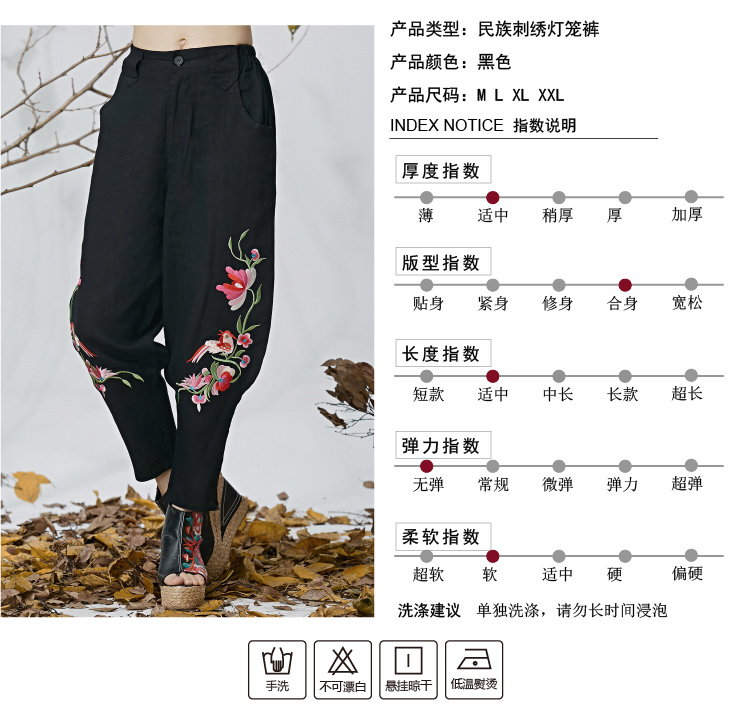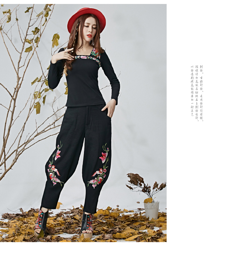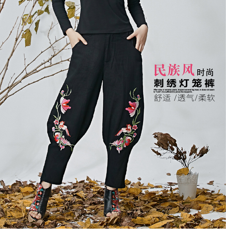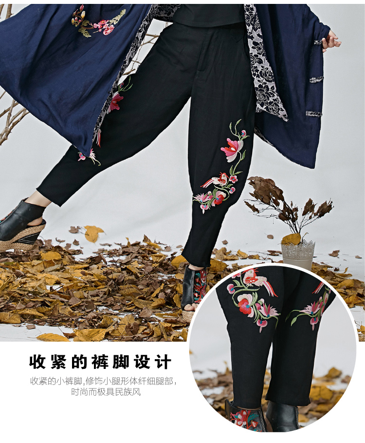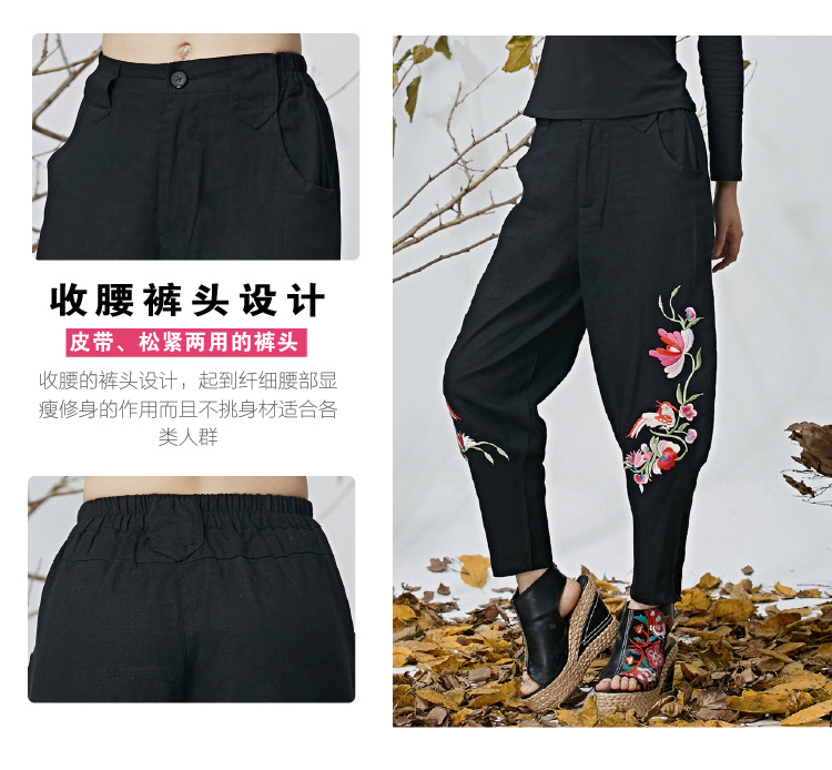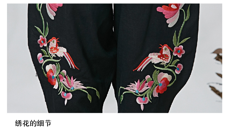 黑色M春夏新款女裝民族文藝風中國風刺繡花收腳闊腿褲休閑褲長褲女