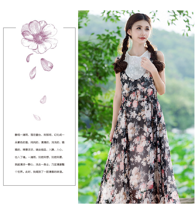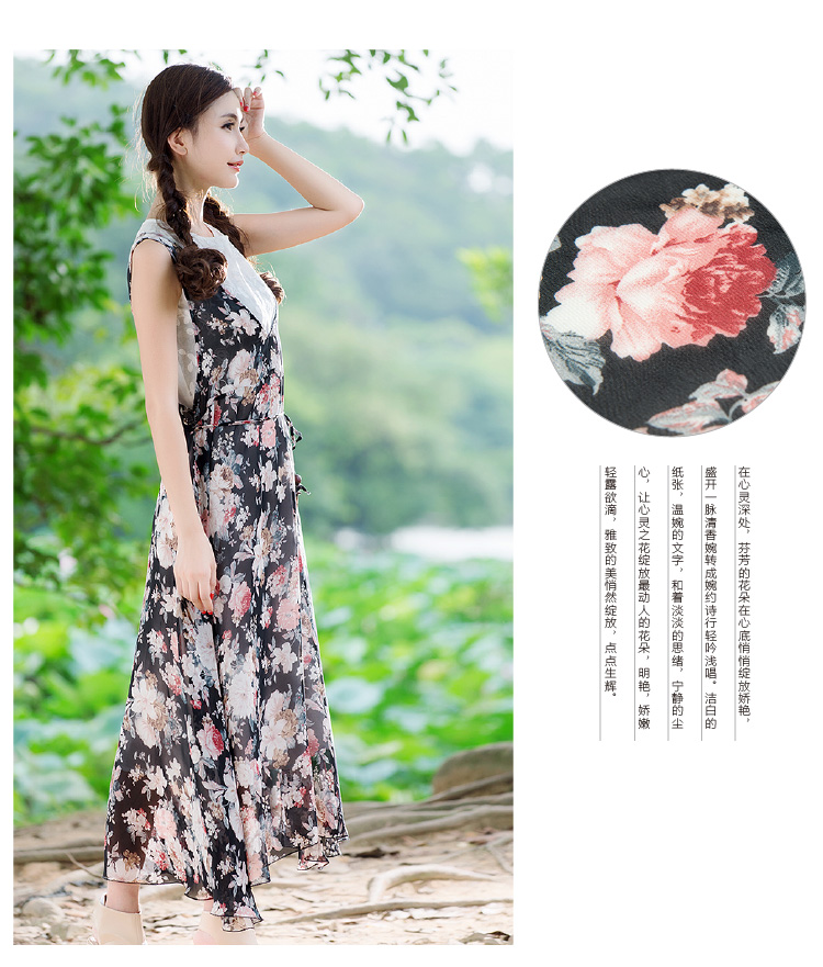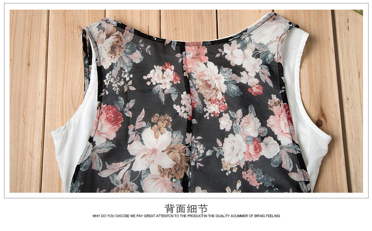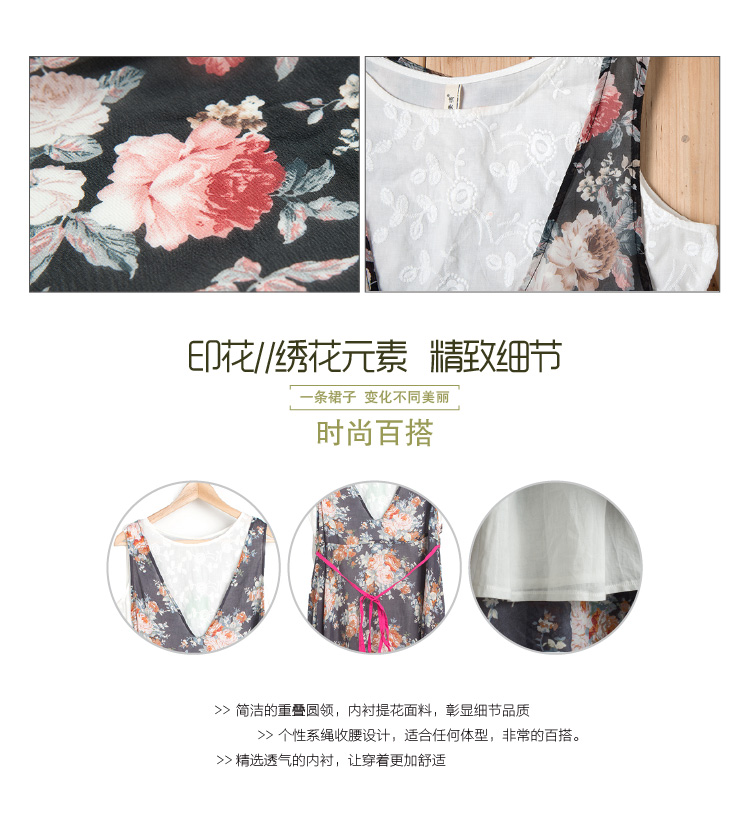 黑色M春夏新款女裝中國風民族風文藝風刺繡花兩件套無袖圓領雪紡連衣裙